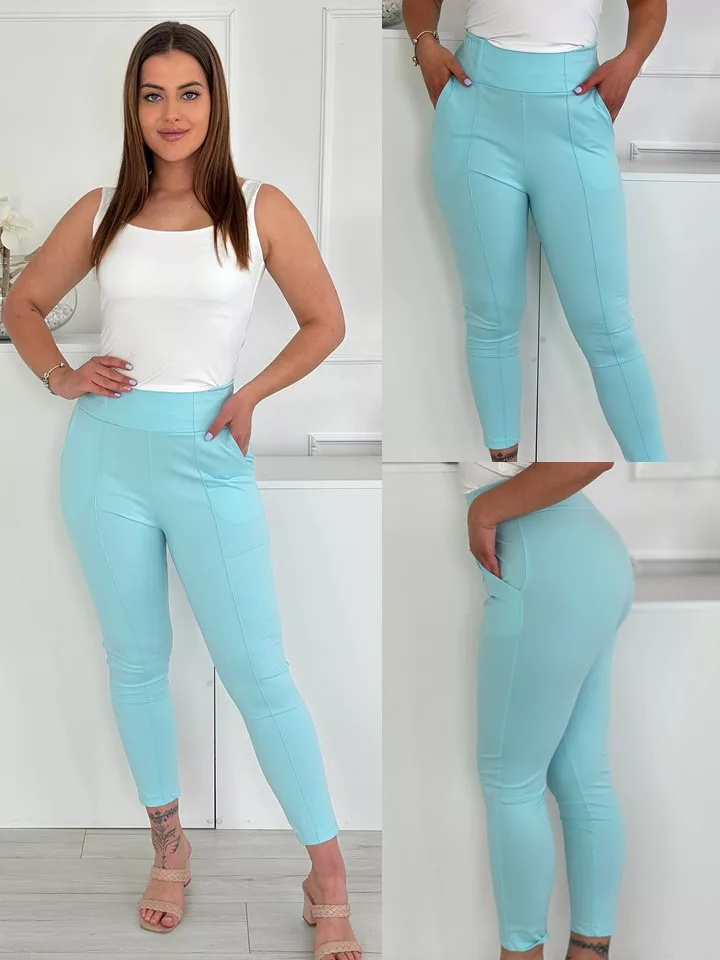 Csinos, élvarrásos nadrág ,rugalmas anyagú, magas, gumis derekú, zsebes. (S-M méretre ajánljuk.)