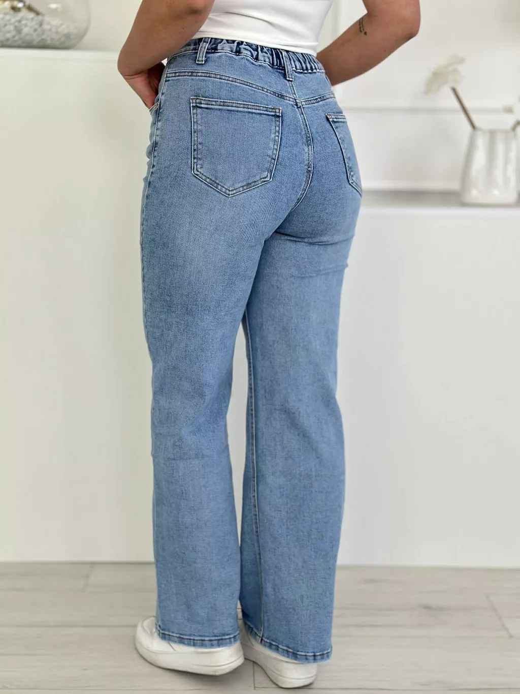 Csinos, rugalmas farmer ,magas, gumis derekú, mekgötős, egyenes szárú. A Modell S méretet visel.