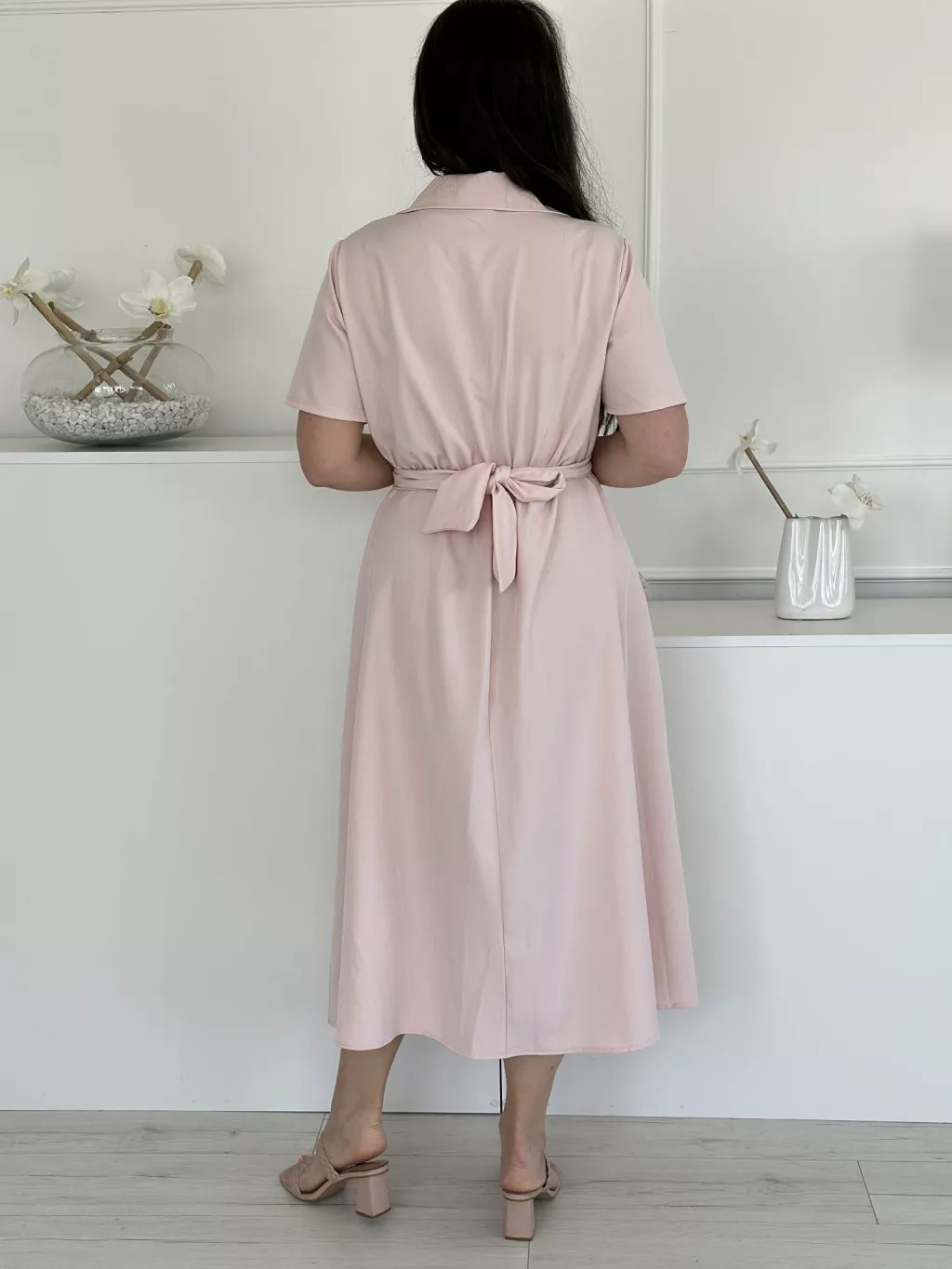 Csinos, zsebes ruha ,A vonalú, gumis derekú, gombos, megkötős, nem rugalmas anyagú. (S-L méretre ajánljuk.)