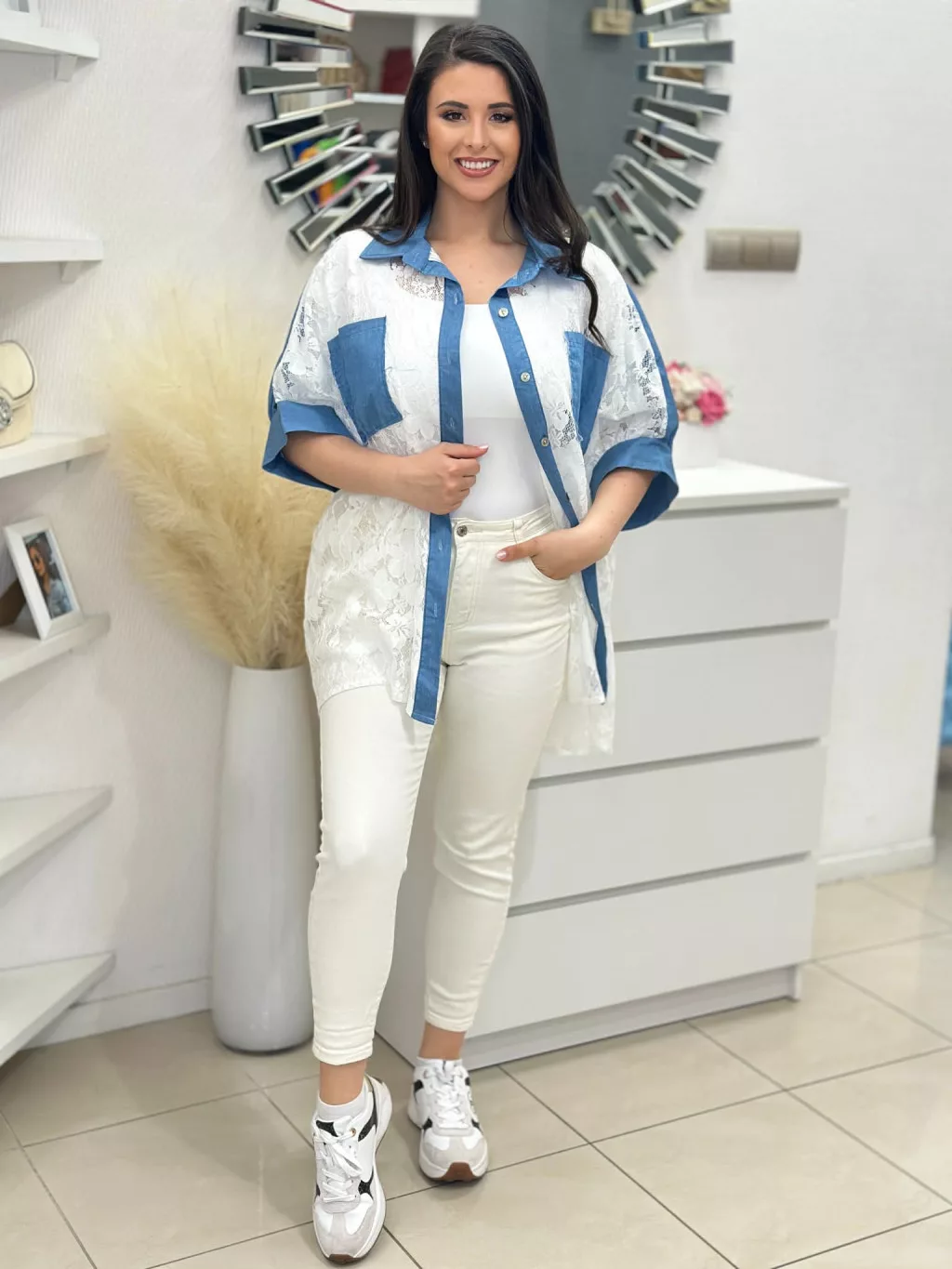 Csipkés tunika , nem rugalmas, áttetsző, lenge fazonú. (M-XL méretre ajánljuk.)
