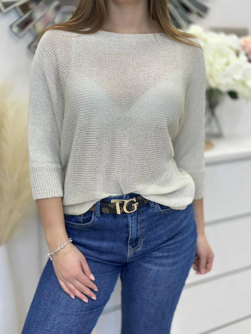 Denevérujjas felső , lenge fazonú, rugalmas, kötött. (S-L méretre ajánljuk.)