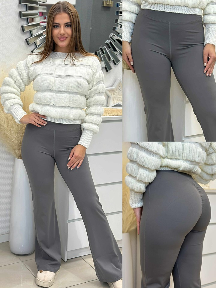 Fenékformáló, sportos fazonú nadrág , rugalmas anyagú, magas derekú. A Modell L/XL méretet visel.