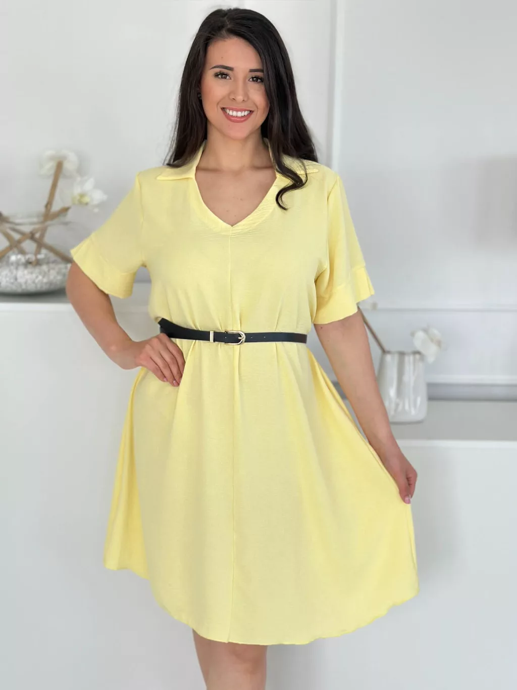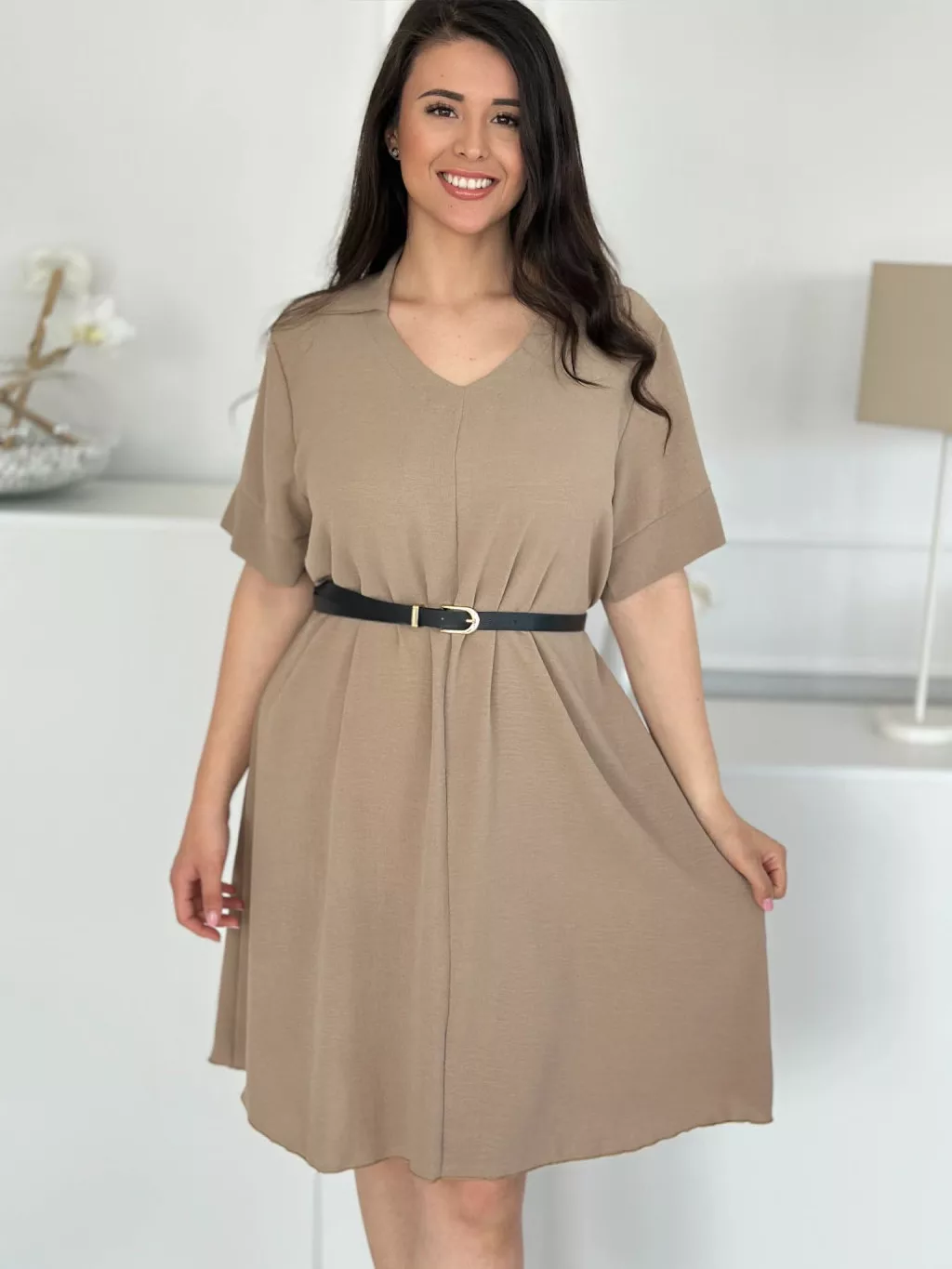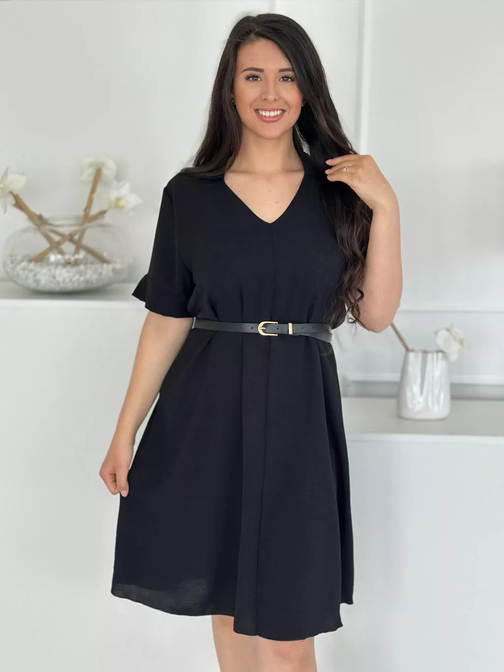Lenge fazonú ruha övvel , V kivágású, nem rugalmas anyagú. (M-XL méretre ajánljuk.)