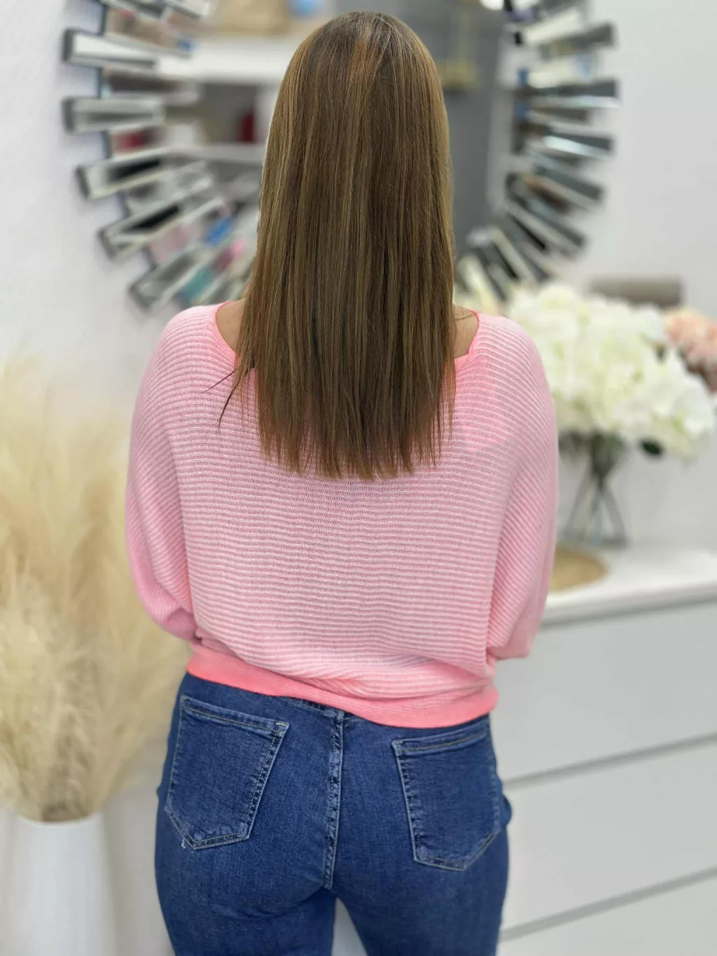 Lenge, kötött felső , pihepuha, rugalmas anyagú, denevérujjas. (S-L méretre ajánljuk.)
