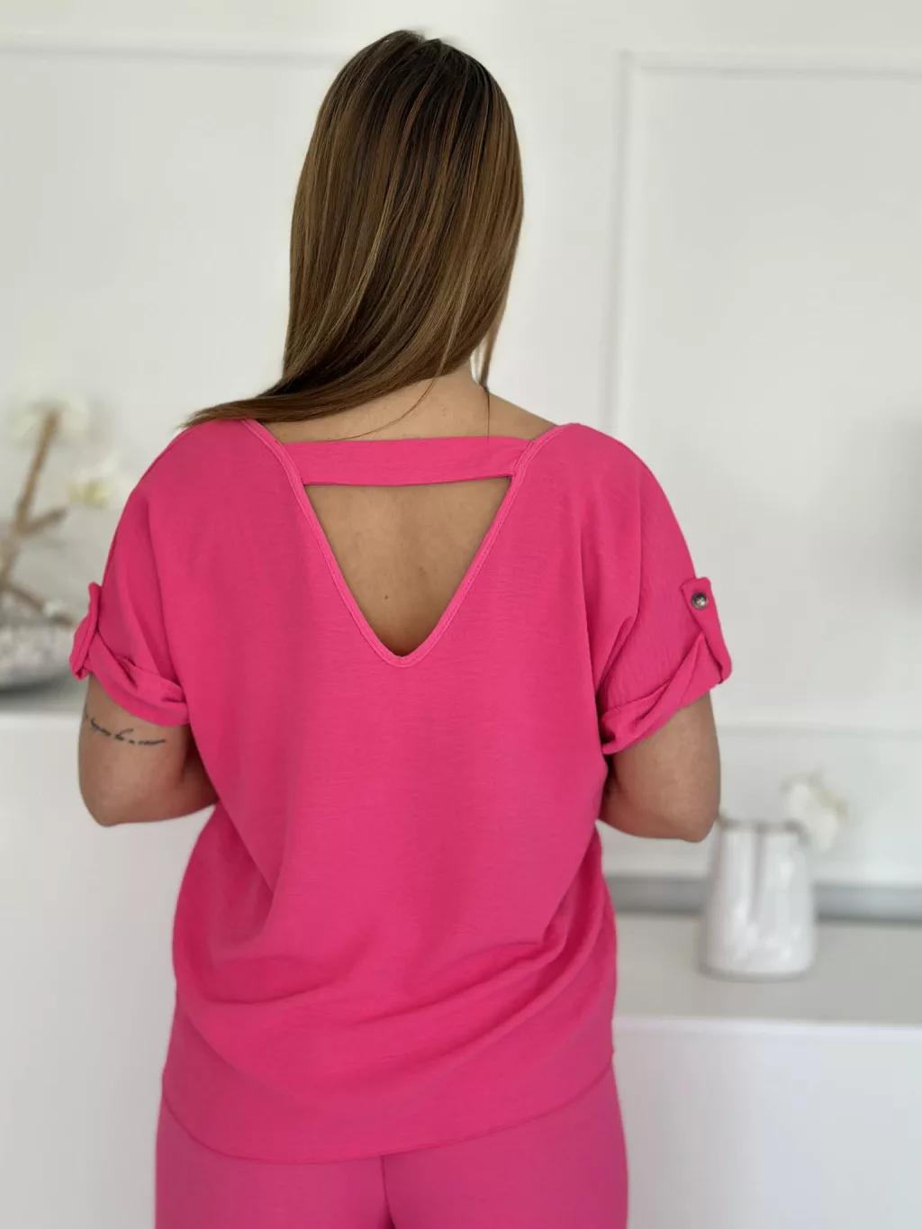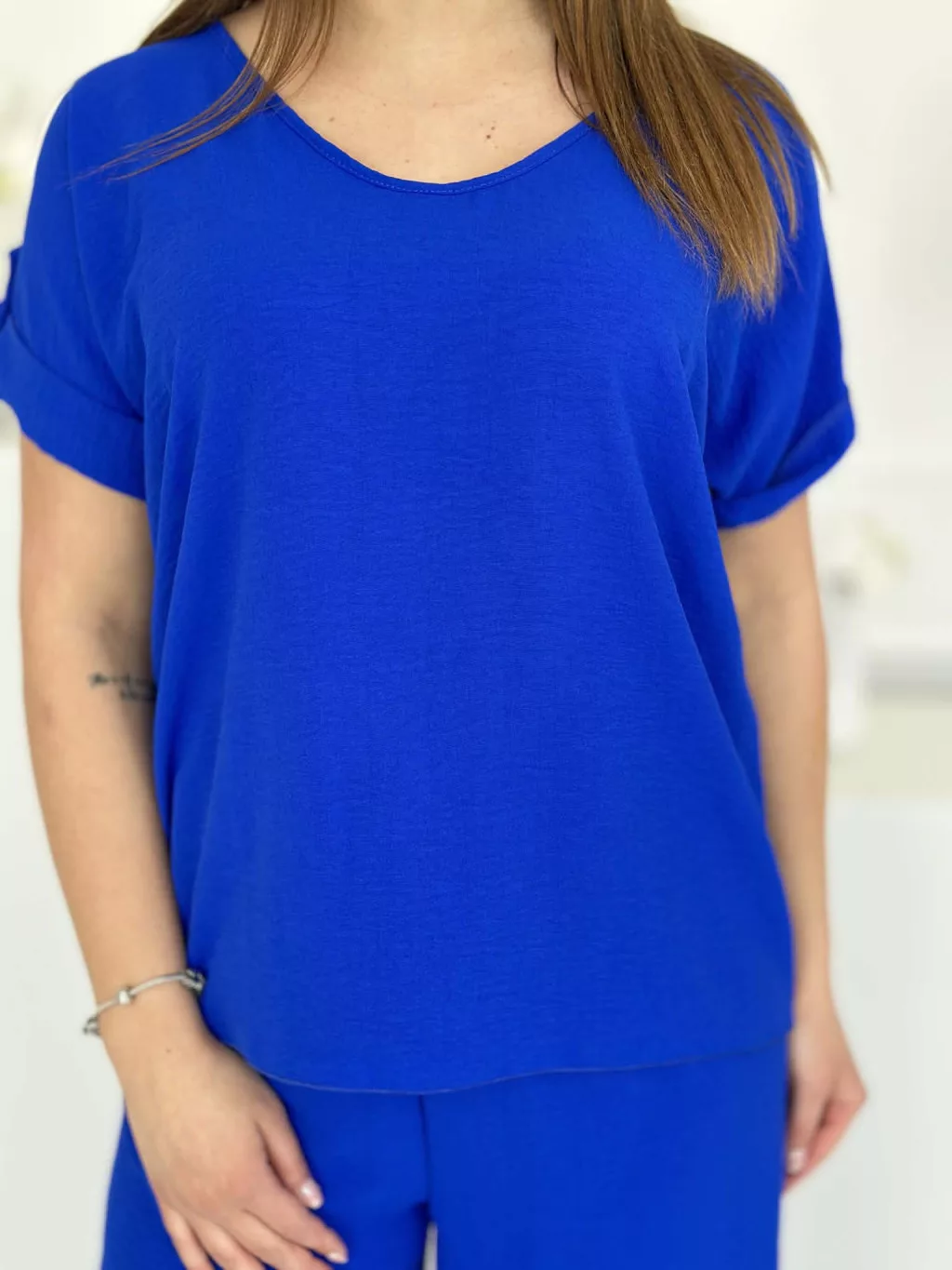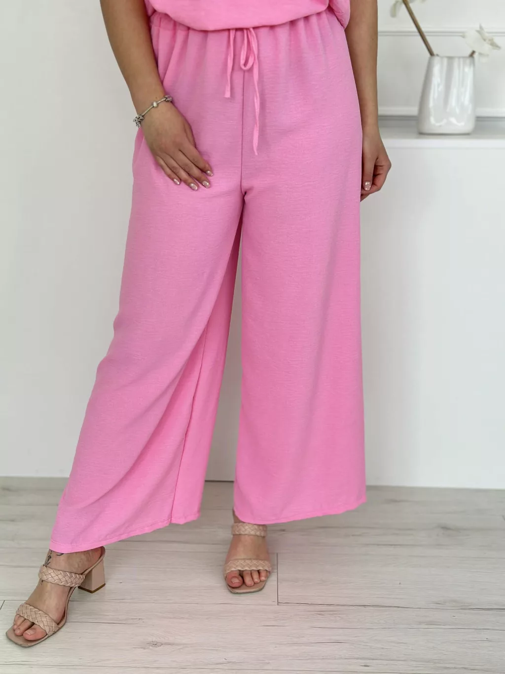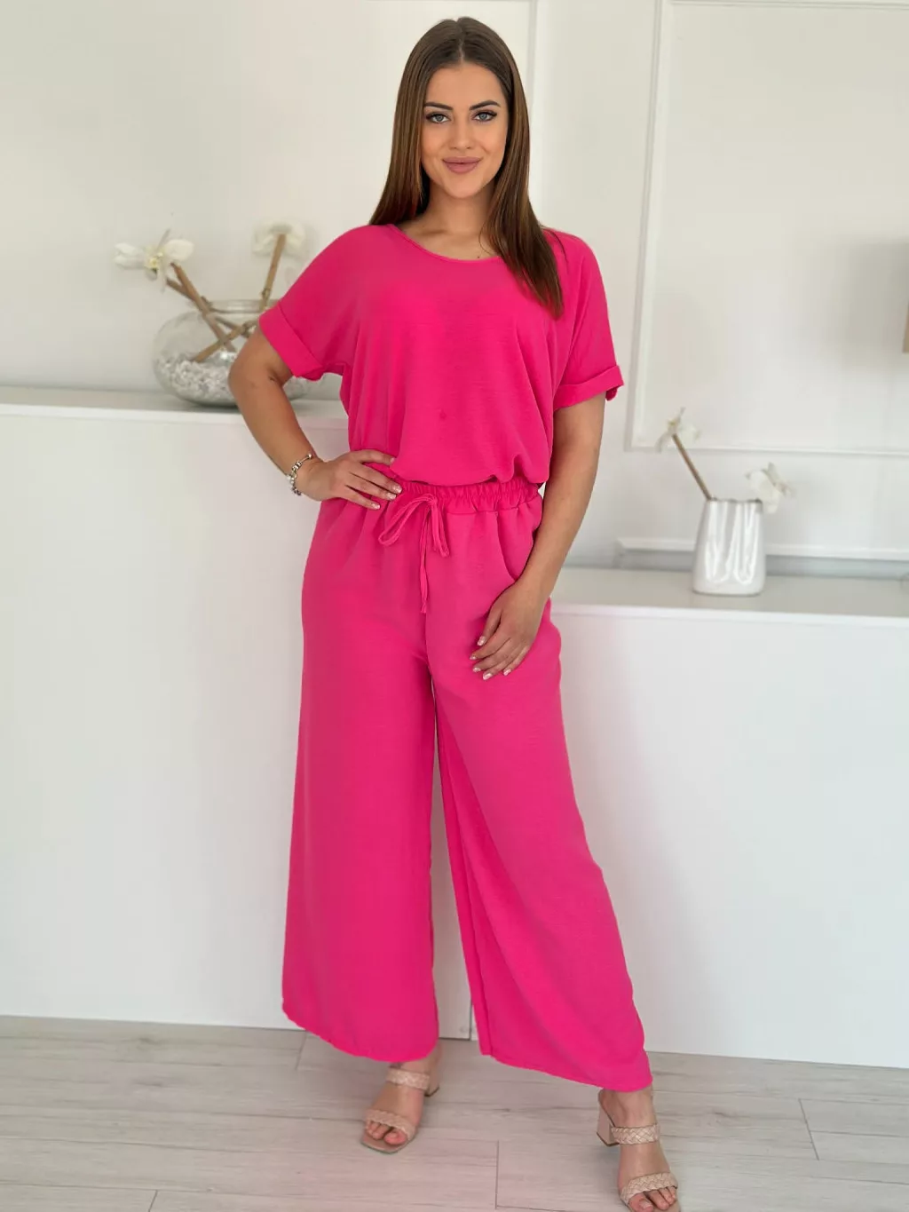 Lenge szett ,nem rugalmas, bő fazonú felső, magas, gumis derekú nadrággal. (S-L méretre ajánljuk.)