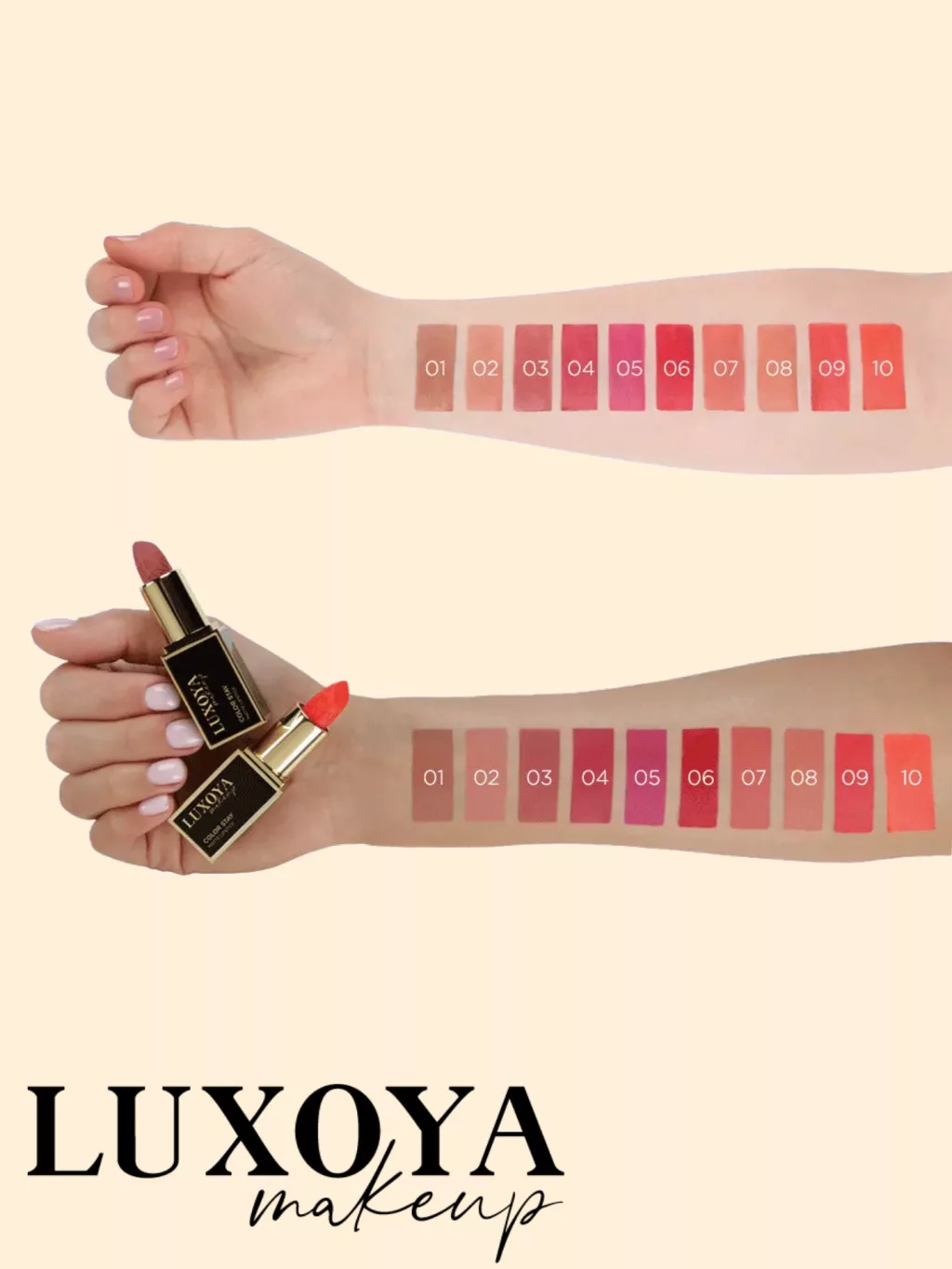• Tökéletes fedésű, erőteljesen pigmentált, krémesen matt rúzsok.