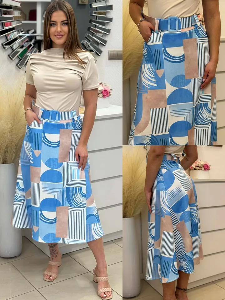 ÚJ Mintás, zsebes szoknya övvel