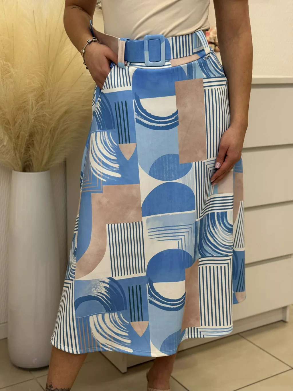 Mintás, zsebes szoknya övvel