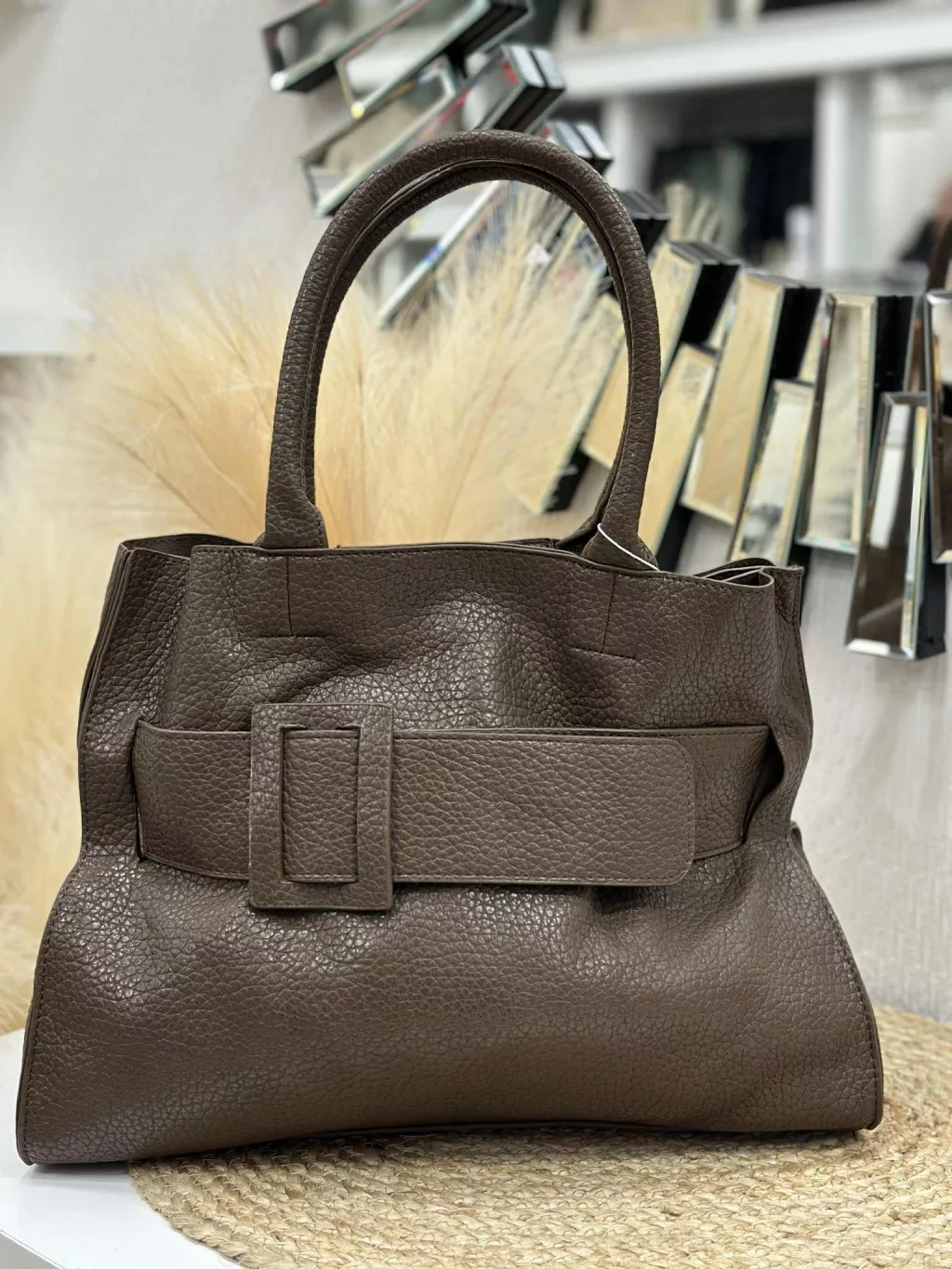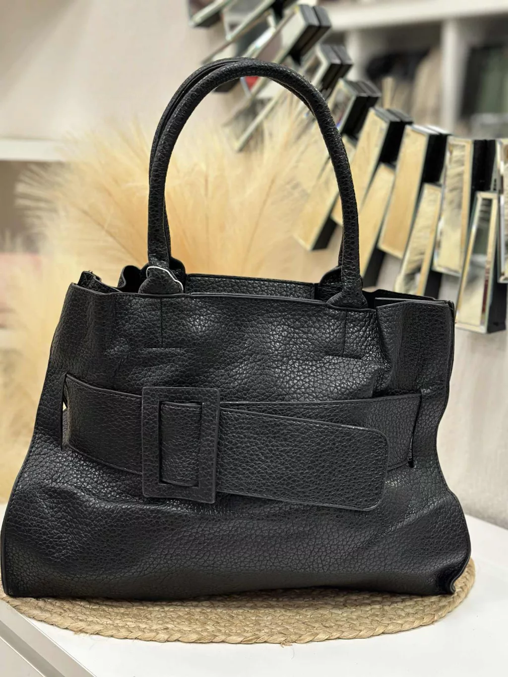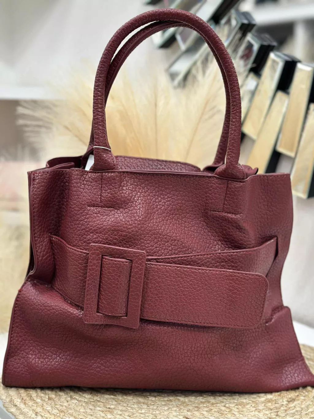 Nagyméretű, két részes, műbőr táska, levehető hosszúpánttal.