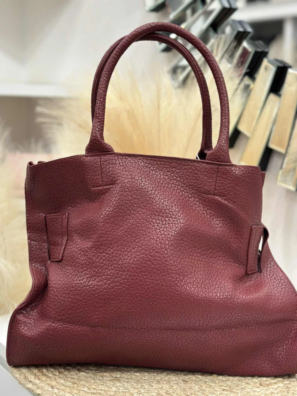 Nagyméretű, két részes, műbőr táska, levehető hosszúpánttal. Szélesség: 38 cm Magasság: 32 cm.