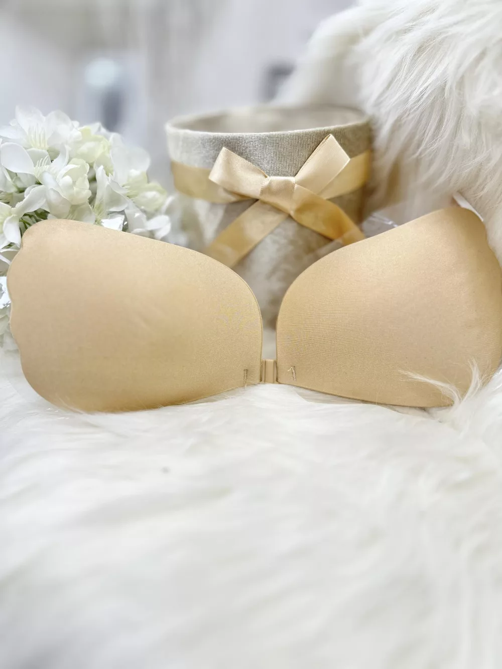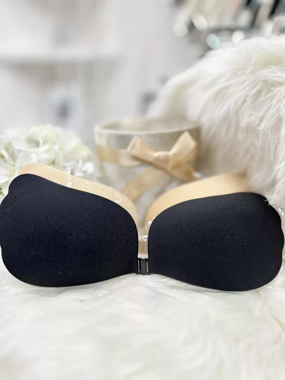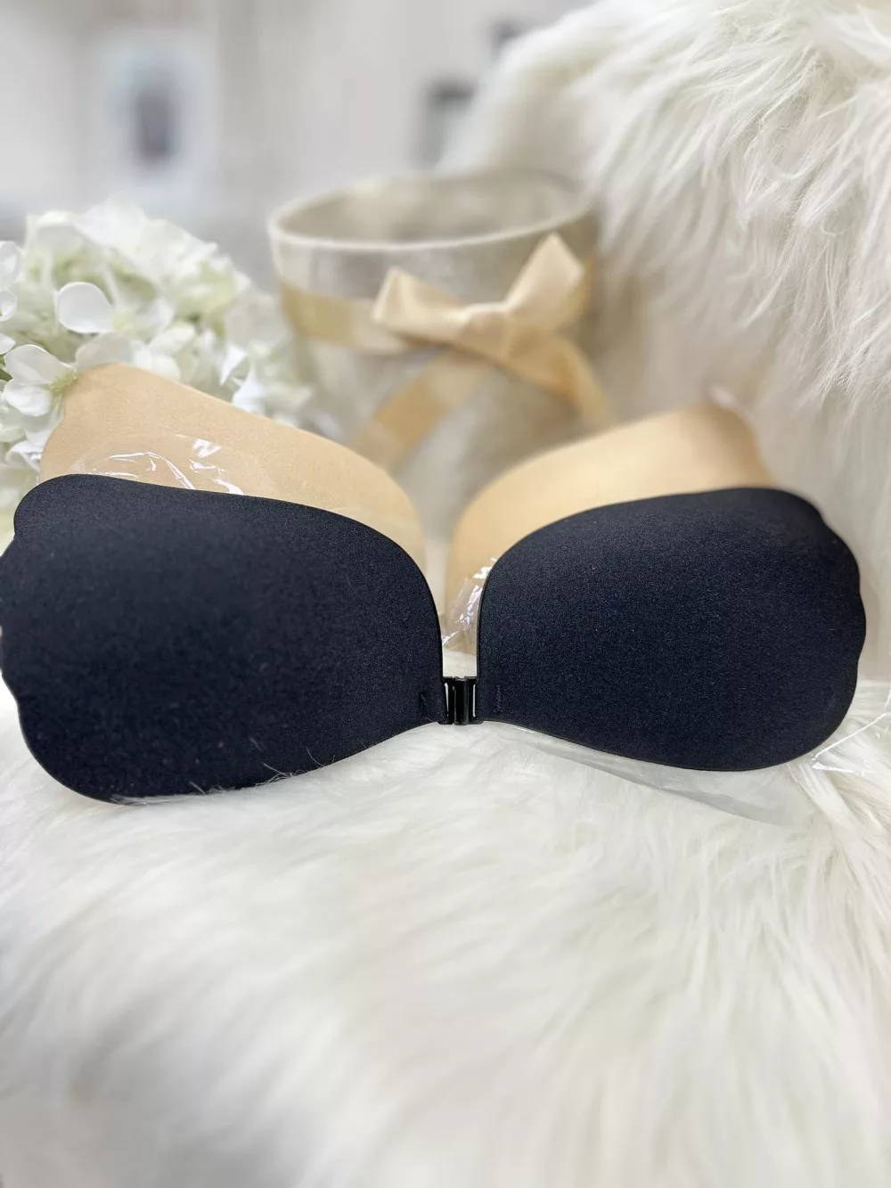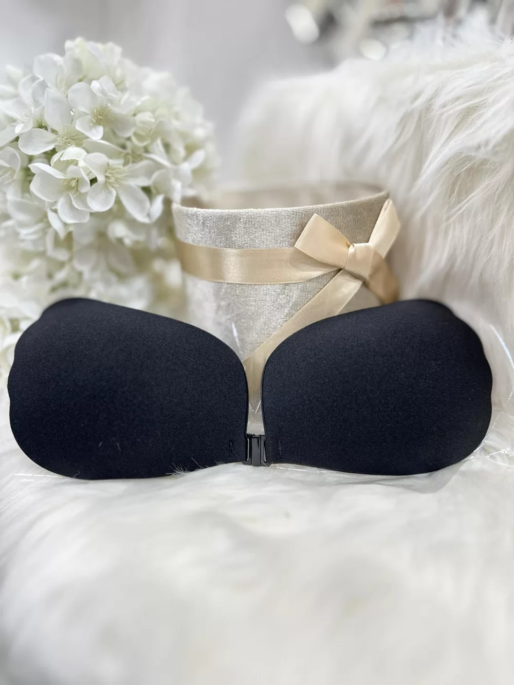 Öntapadós, középen kapcsos, szatén hatású, belül szilikonos, többször használatos melltartó.
