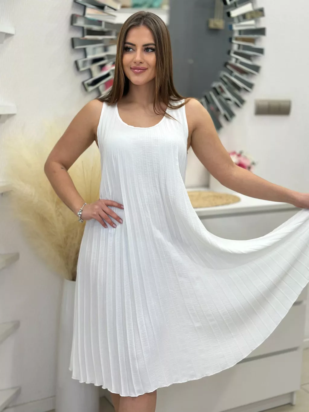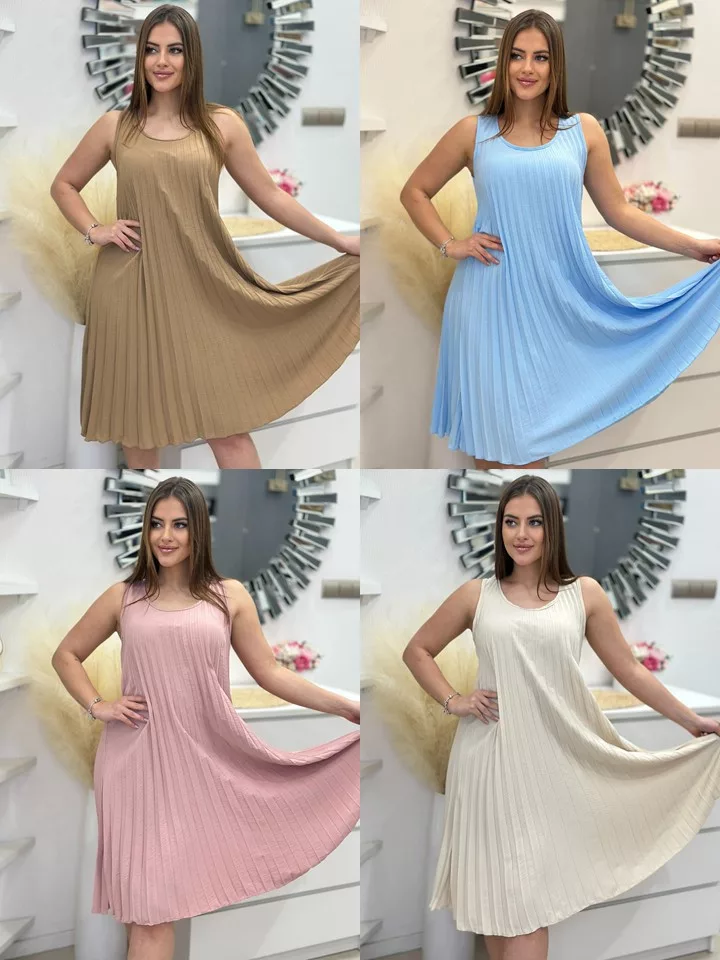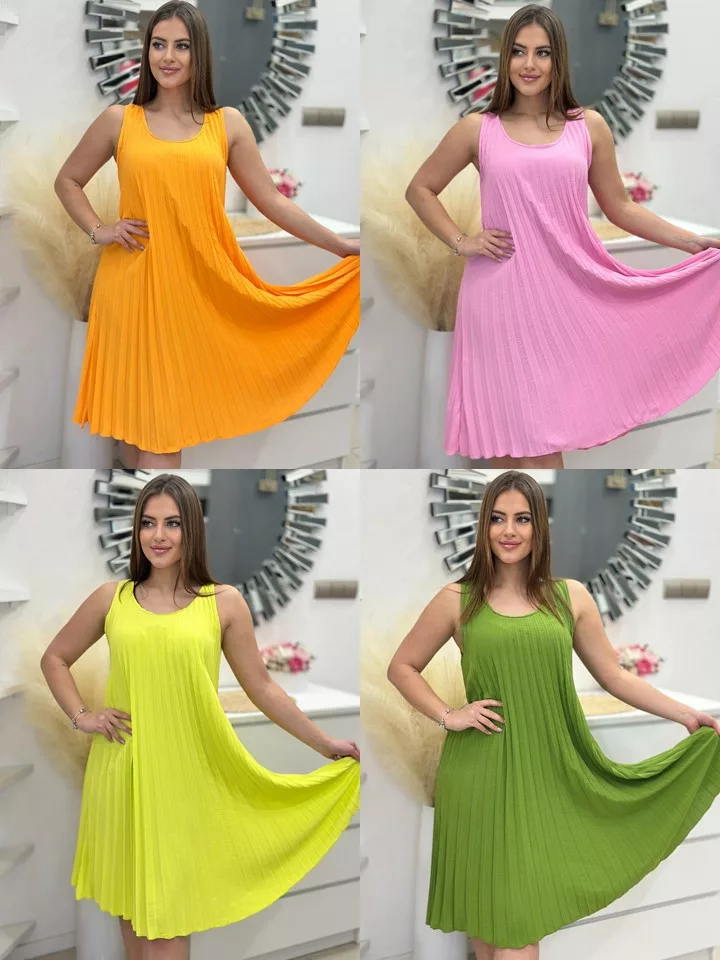 Pliszírozott ruha , lenge fazonú, nem rugalmas anyagú. (S-L méretre ajánljuk.)