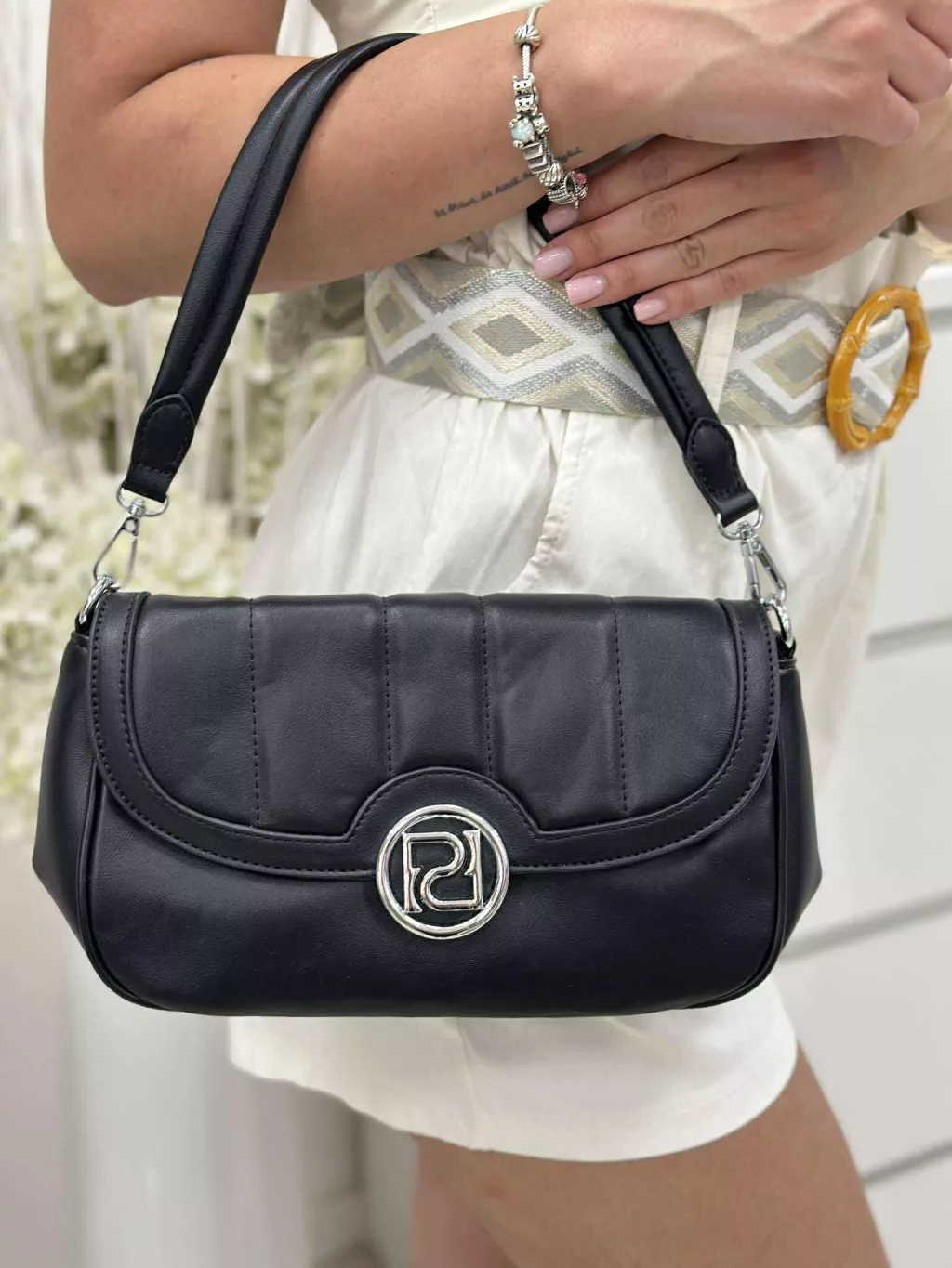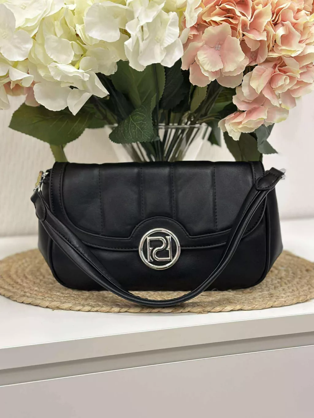 Puha, műbőr táska, levehető hosszú és rövid pánttal. Szélesség: 28cm Magasság: 14 cm.