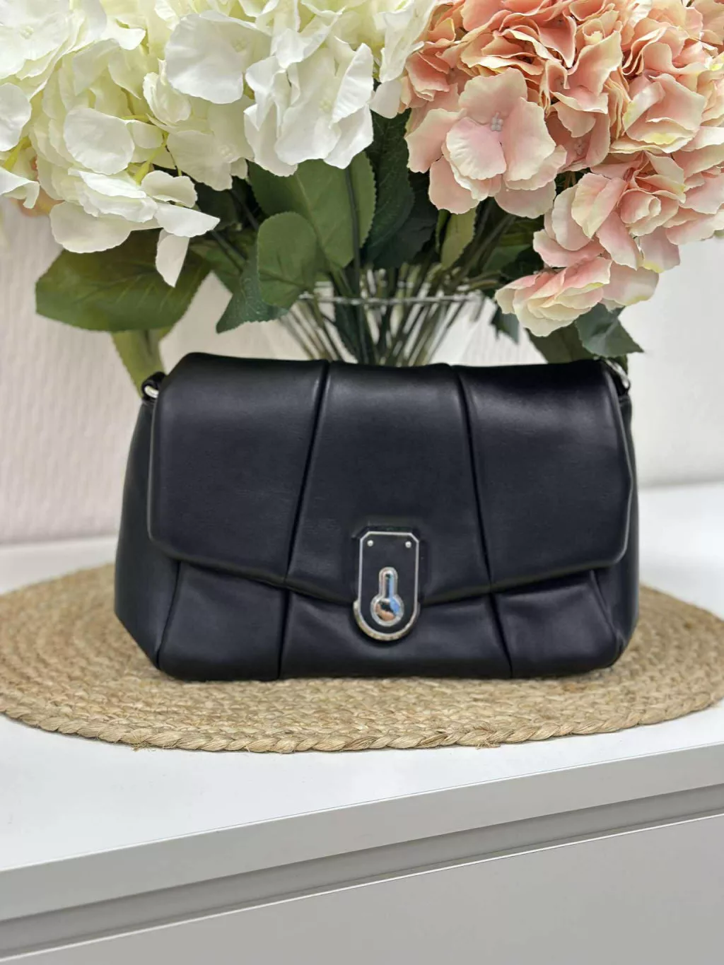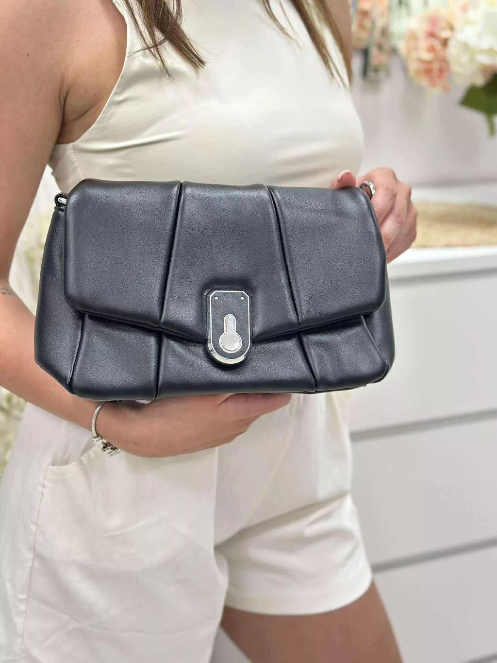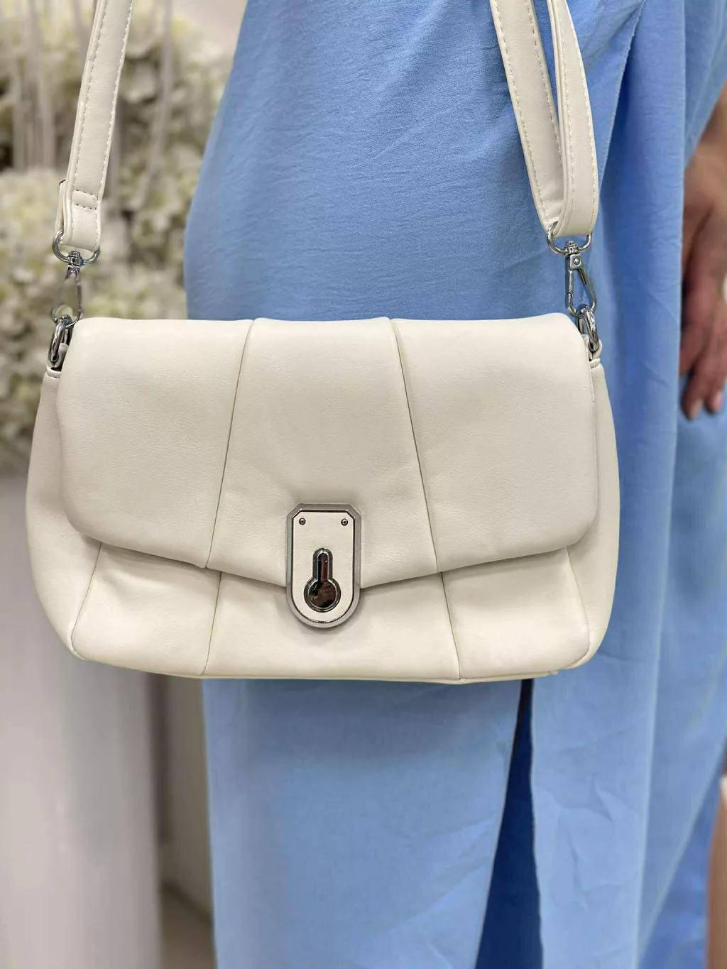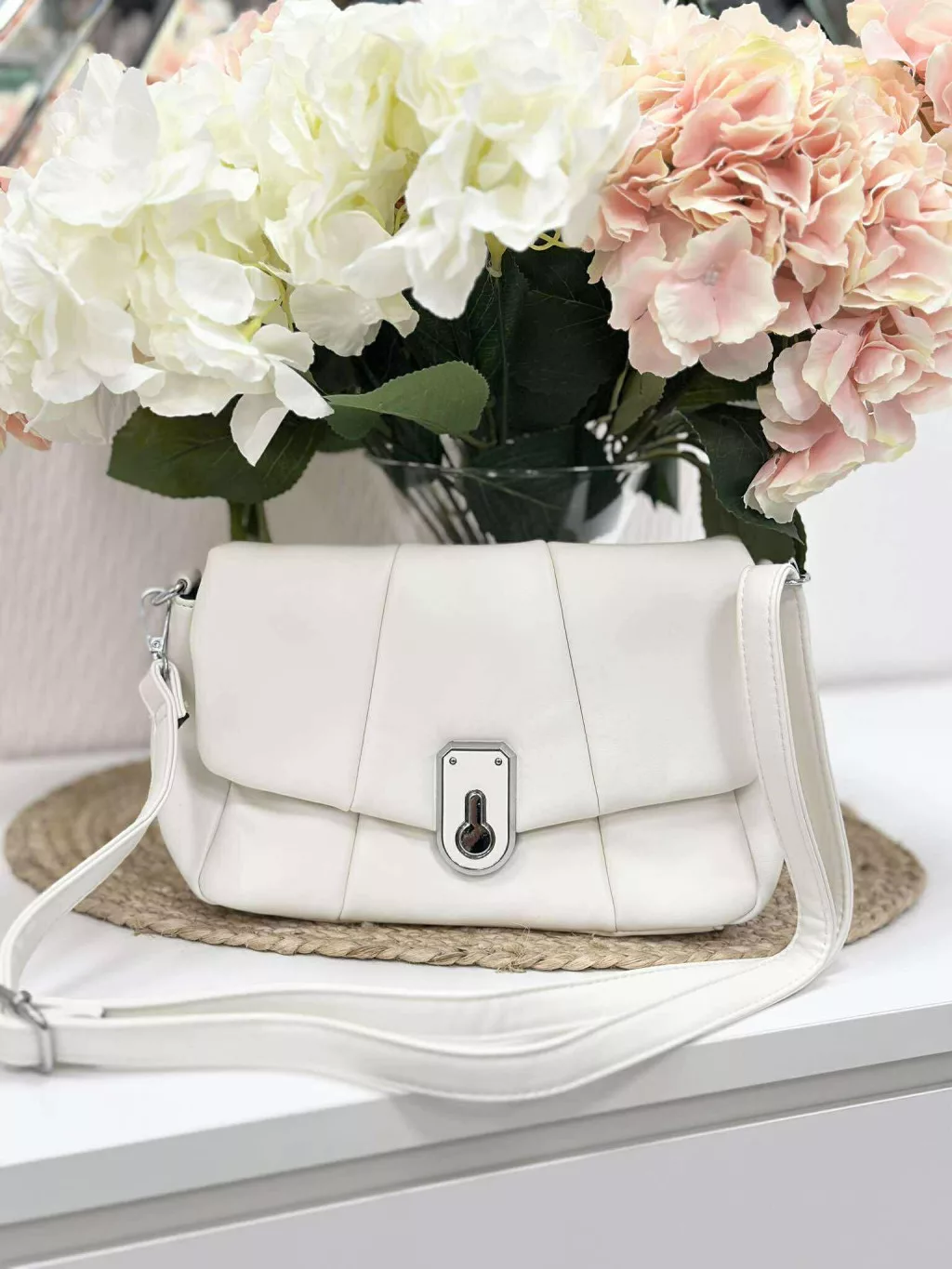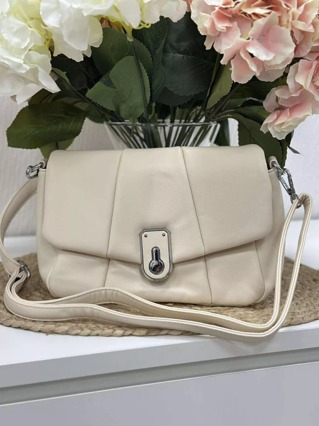 Puha, műbőr táska, levehető hosszú pánttal. Szélesség: 28 cm Magasság: 17,5 cm.