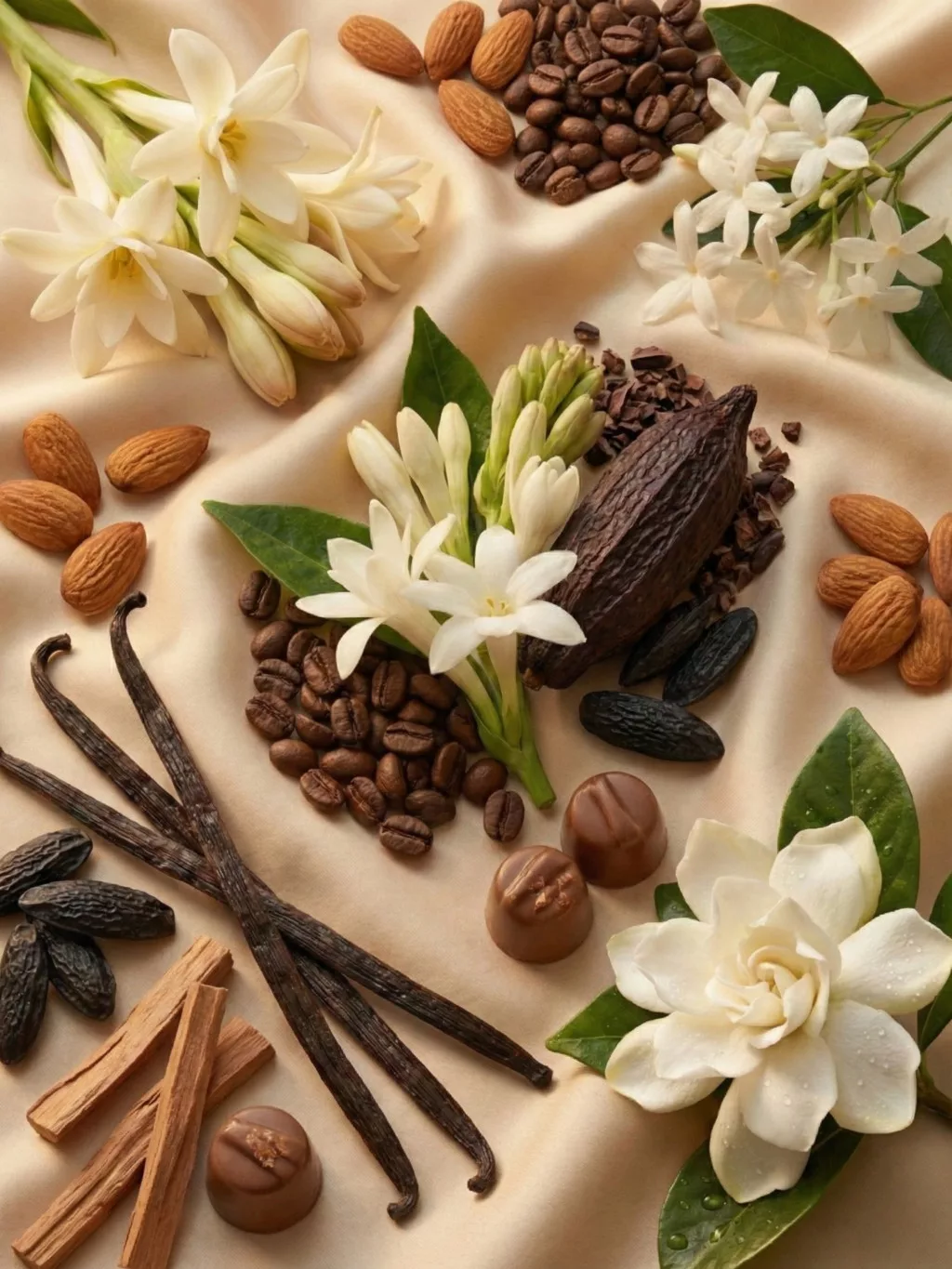 Milyen illatélményre számíthatsz? A nyitányban azonnal rabul ejt az édes mandula és az élénkítő kávé energetikus párosa, amely azonnal felhívja magára a figyelmet. Ahogy az illat szárad, előbújik a szívjegyek nőiessége: a tubarózsa és az arab jázmin (sambac) elegáns, krémes virágossága. Végül a lecsengésben a pörkölt tonkabab és a kakaó sötét, gourmand jegyei adnak neki egy meleg, mély és addiktív karaktert, amely órákig a bőrödön marad.