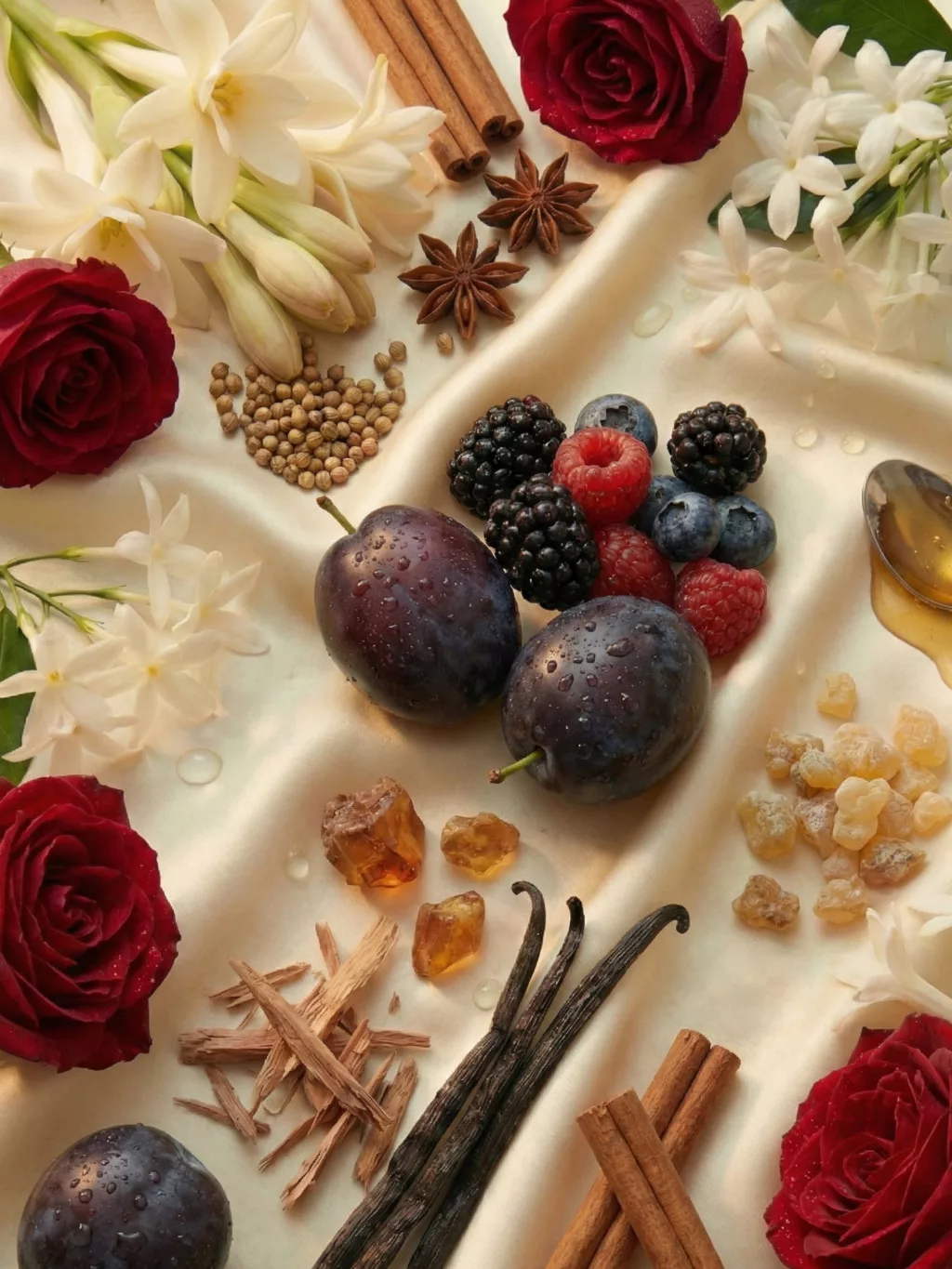 Milyen illatélményre számíthatsz? A nyitányban szinte robban a fűszeres koriander és az érett szilva sötét, gyümölcsös édessége, amit az ánizs tesz különlegesen pikánssá. Ahogy az illat szárad a bőrödön, előbújik a szívjegyek királynője, a tubarózsa, amelyet a méz édessége, a fahéj melegsége és a tömjén füstössége tesz mélyen erotikussá. A lecsengésben a vanília, az ámbra és a szantálfa krémes, balzsamos ölelése gondoskodik a hosszan tartó, felejthetetlen auráról.