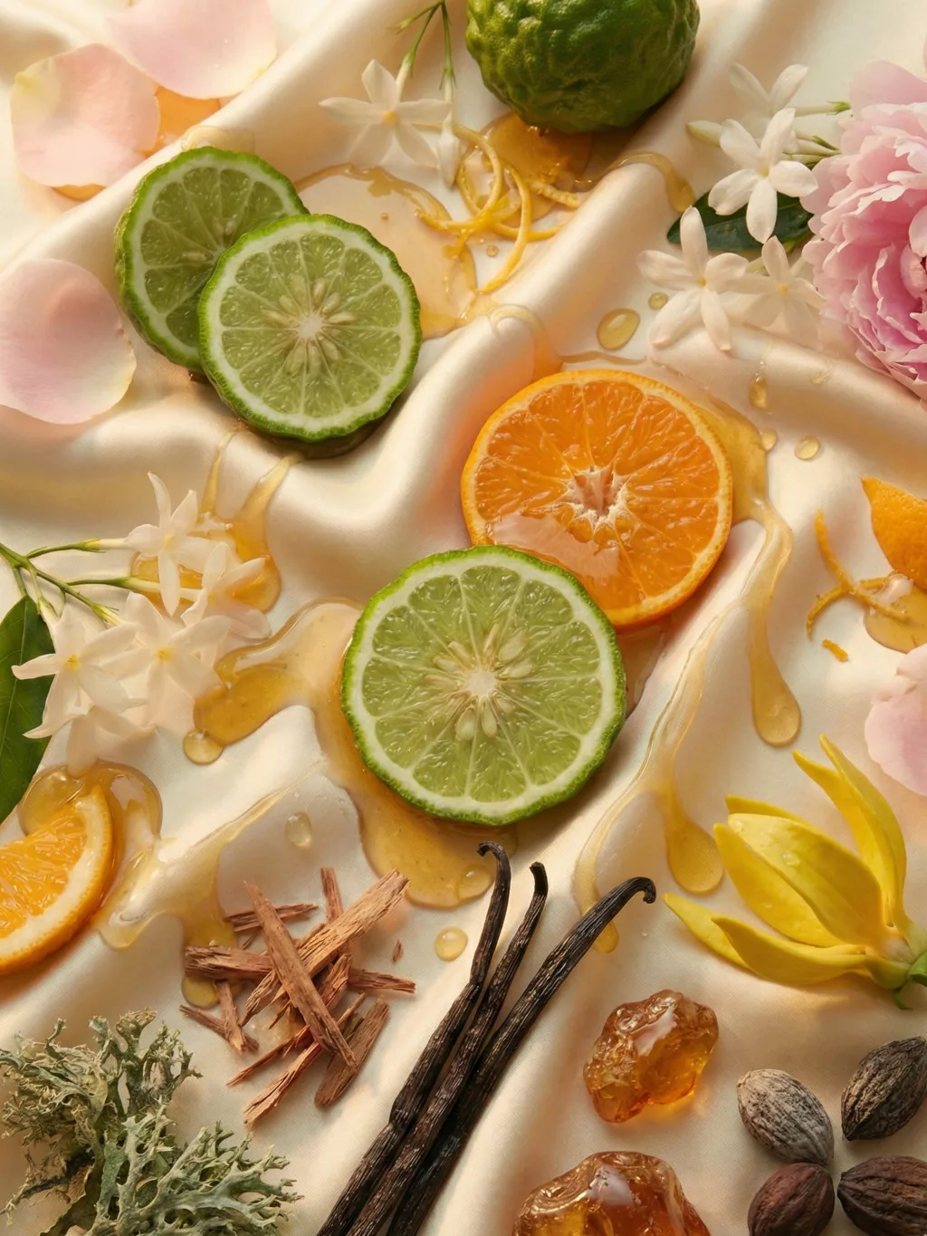 Fejjegyek: Mandarin, Bergamott, Aldehidek, Brazil rózsafa – a friss, szellős és ragyogó indítás.