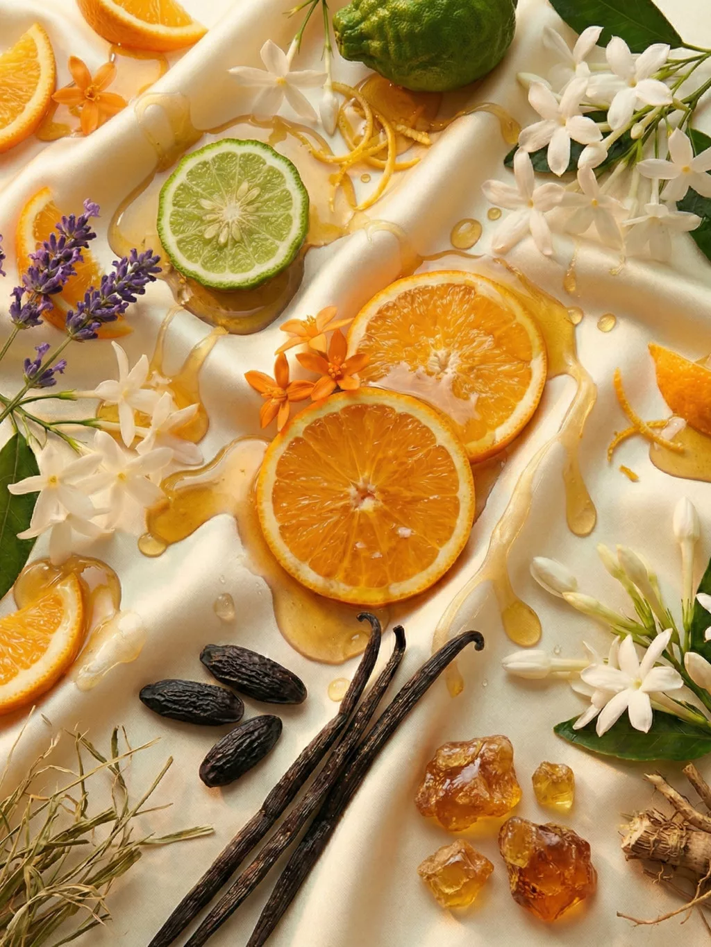 Szívjegyek: Levendula, Arab Jázmin (Sambac), Orchidea, Narancsvirág – az illat virágos, mégis tüzes szíve, ahol a nőiesség dominál.