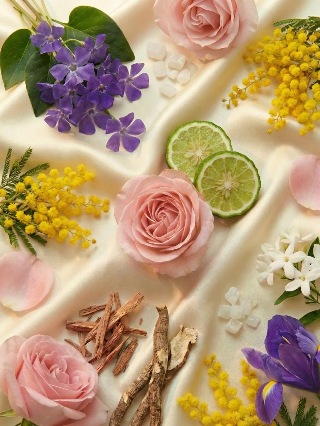 Szívjegyek: Írisz, Bolgár rózsa, Egyiptomi jázmin, Gyöngyvirág, Héliotróp – az illat púderes, mélyen virágos lelke.