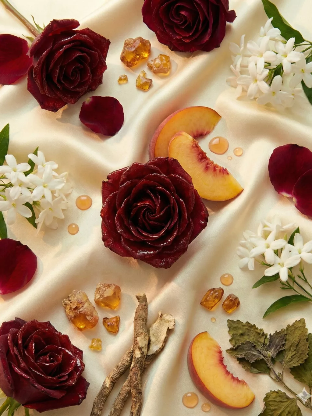 Milyen illatélményre számíthatsz? A nyitányban azonnal megérint a jázmin tiszta, mégis bódító virágossága. Ahogy az illat megpihen a bőrödön, előbújik a szívjegyek édes csábítása: a cukrozott rózsa és az érett őszibarack nektárjának gazdag elegye. Végül az alapjegyekben a borostyán (ámbra) és a pacsuli ad neki egy meleg, földes és végtelenül elegáns lecsengést, amely a lemenő nap melegét idézi egy zápor után.
