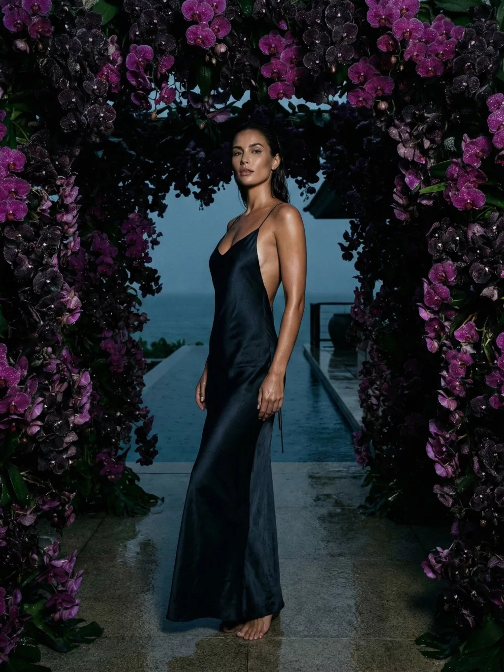 A sötét orchidea és az egzotikus fák érzéki találkozása.