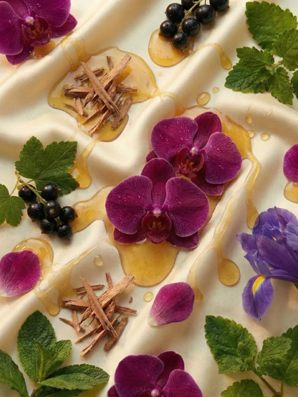 Szívjegyek: Orchidea, Írisz – az illat virágos lelke, amely a nőiességet és az eleganciát testesíti meg.