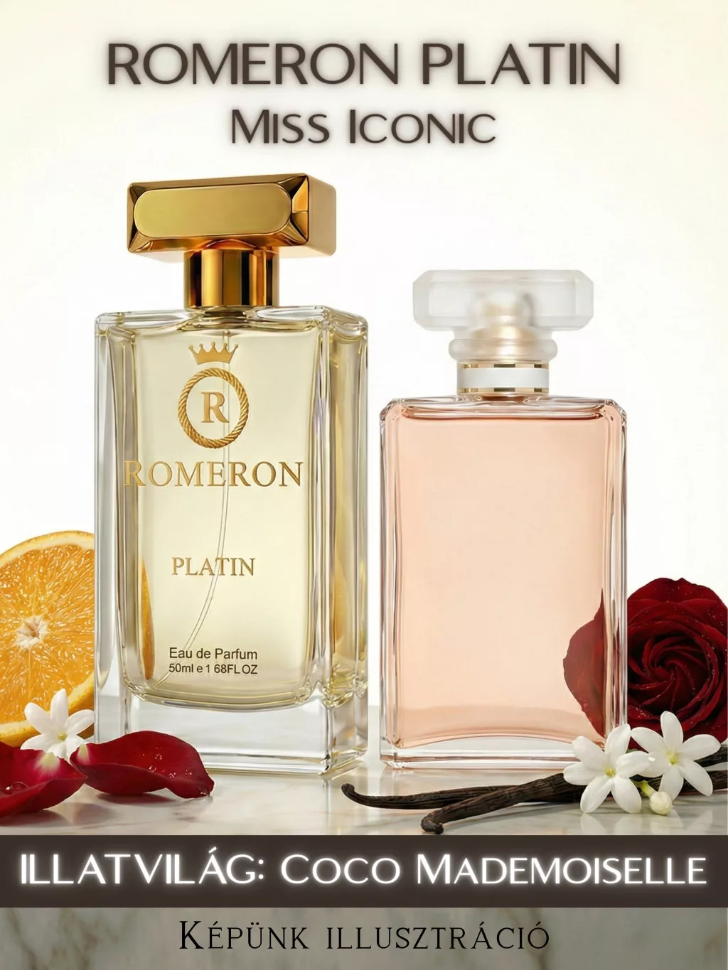Ha szereted a Chanel – Coco Mademoiselle időtlen illatvilágát, akkor ez a parfüm azonnal a szívedbe lopja magát. A Romeron Platin 119 nem csupán egy illat, hanem egy nyilatkozat: a friss, orientális jegyek tökéletes harmóniája, amely egyszerre sugároz határozottságot és nőies érzékiséget.