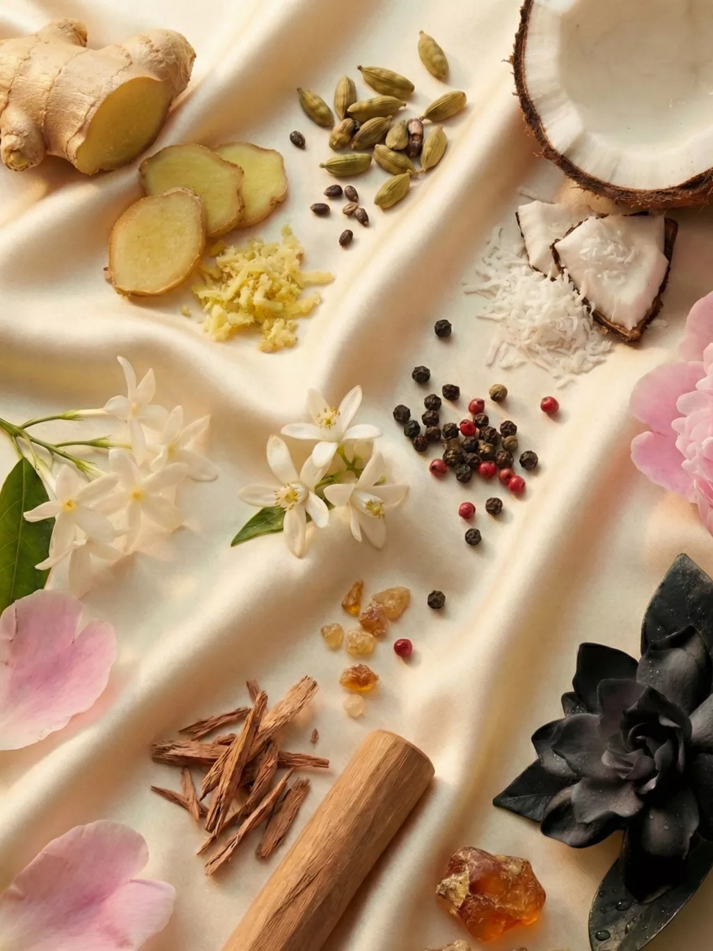 Szívjegyek: Gardénia, Kókusz, Bazsarózsa, Narancsvirág – az illat krémes, virágos és egzotikus lelke.