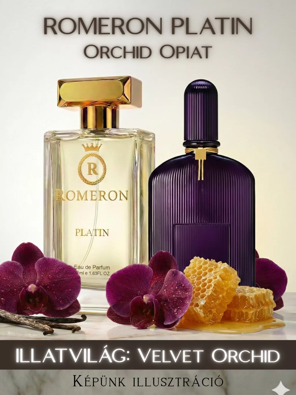 Ha a Tom Ford – Velvet Orchid ikonikus, sötét és fényűző illatvilága rabul ejtett, akkor a Romeron No. 244 azonnal a szívedbe lopja magát. Ez a parfüm nem csupán egy illat, hanem egy kinyilatkoztatás: a Black Orchid drámai erejét finomítja, egy lágyabb, nőiesebb, mégis hihetetlenül intenzív "bársonyos" köntösbe öltöztetve.