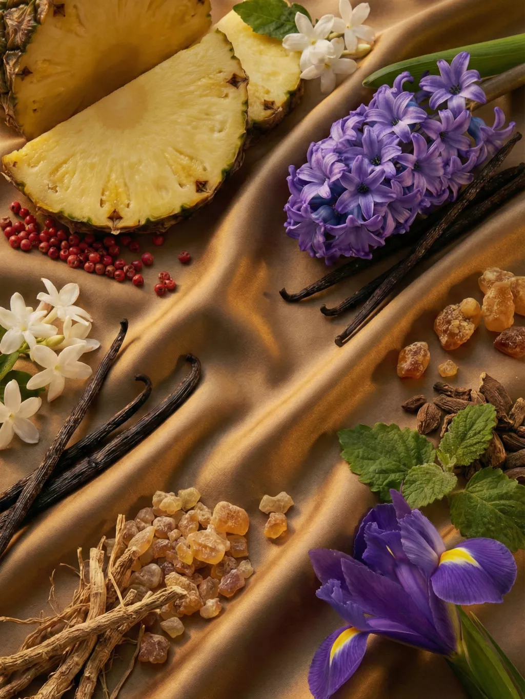 Az ananász és a jácint vibráló, kifinomult harmóniája.