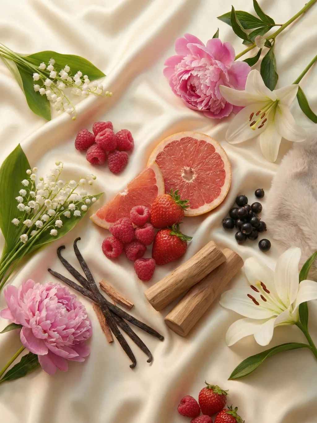 Milyen illatélményre számíthatsz? A nyitányban azonnal magával ragad a málna és a vad szamóca édes-savanykás robbanása, amit a grapefruit pezsgése és egy leheletnyi menta tesz igazán hűsítővé. Ahogy az illat szárad, előbújik a szívjegyek virágos eleganciája: az ibolya, a gyöngyvirág és a bazsarózsa lágyítja a gyümölcsös kezdetet. Végül a kasmírfa, a vanília és a pézsma ad neki egy puha, krémes és érzéki lecsengést, amely a bőrödön elidőzve válik igazán vonzóvá.