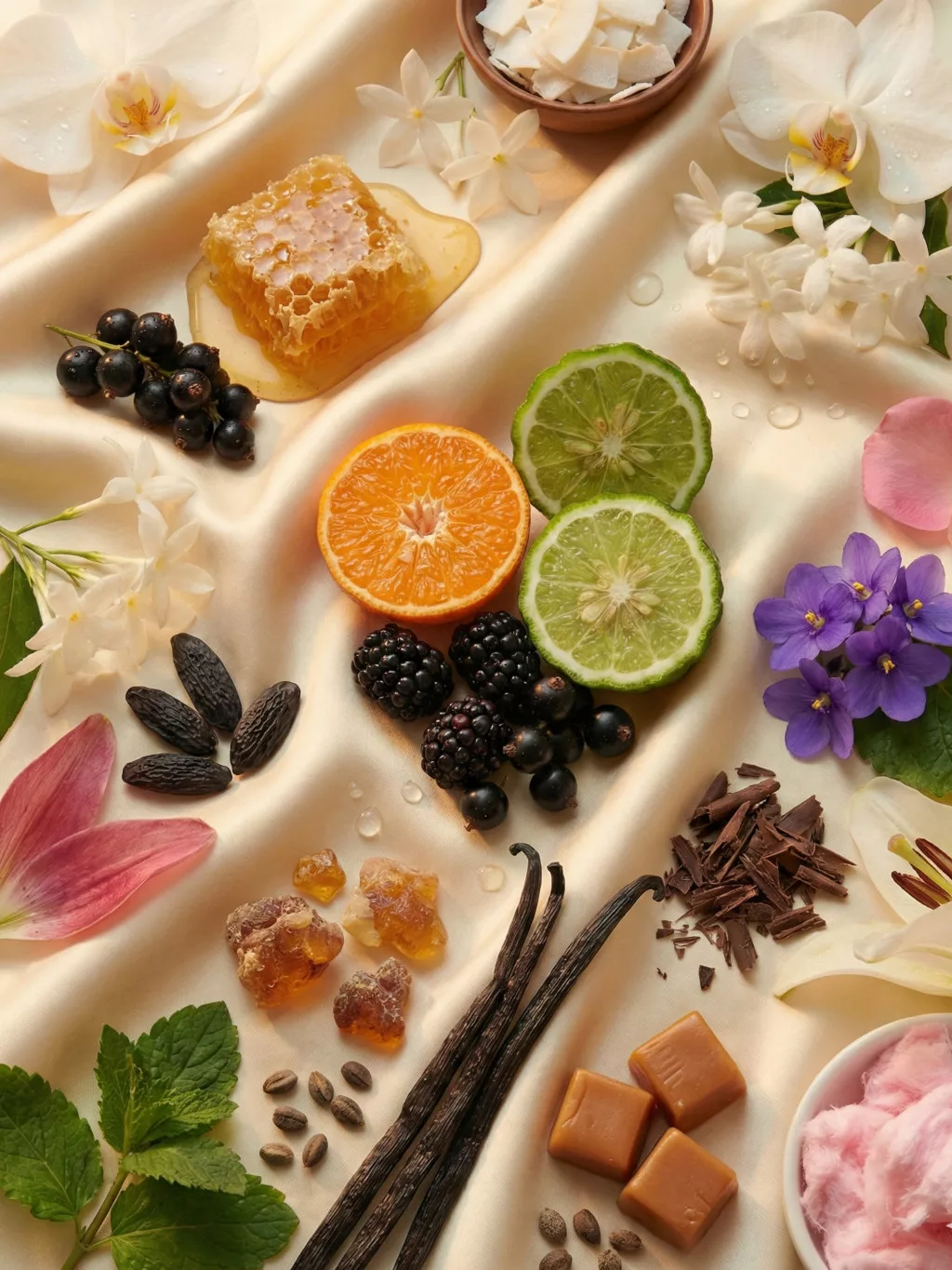Milyen illatélményre számíthatsz? A nyitányban egy éles, mégis édes fuvallat érkezik: a bergamott frissessége keveredik a vattacukor és a kókusz játékos, cukros felhőjével. Ahogy az illat megpihen a bőrön, a szívjegyekben feltárul a mézzel csorgatott gyümölcsök – a szilva, a barack és a piros bogyósok – gazdagsága. A lecsengés pedig maga a tömény csábítás: a sötét csokoládé, a krémes karamell és a földes pacsuli olyan mély és meleg aurát von köréd, amely órákkal később is érezhető marad.