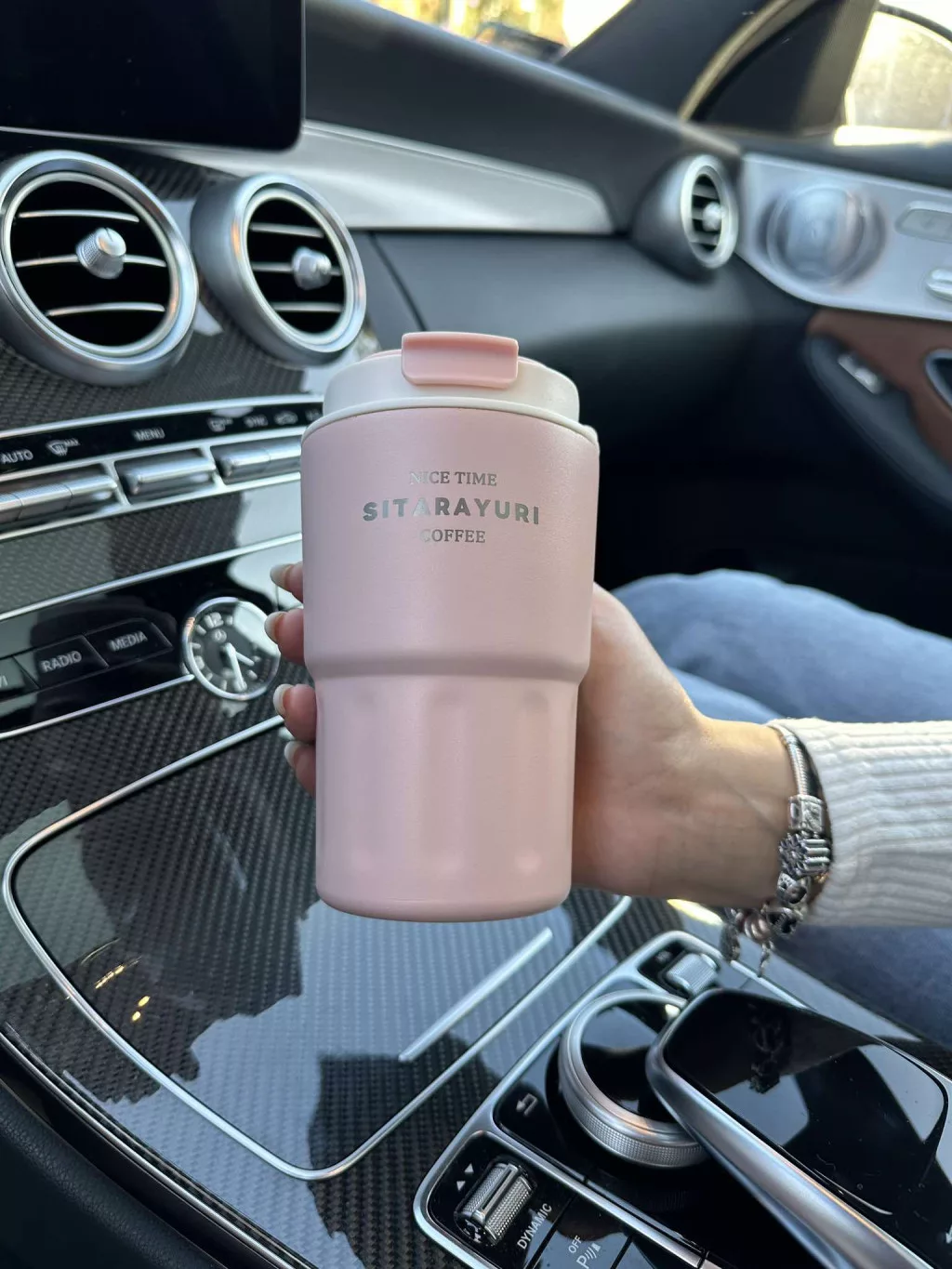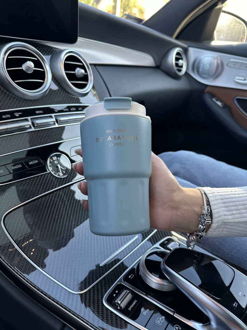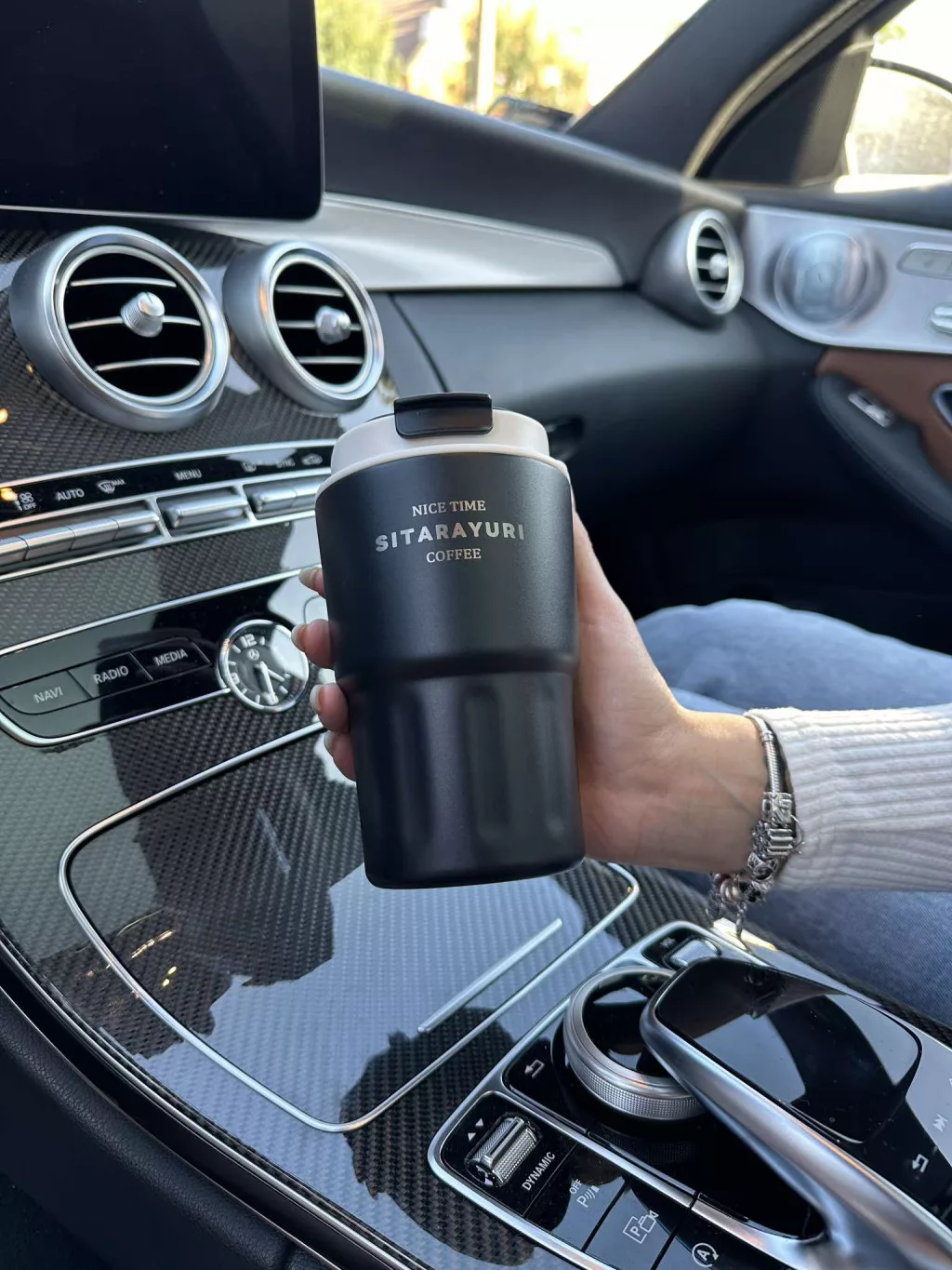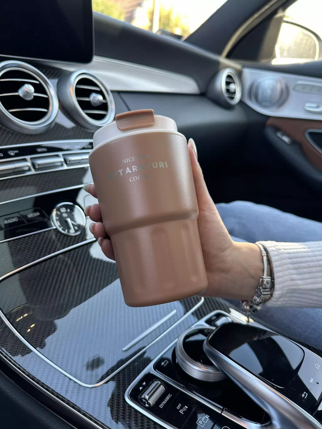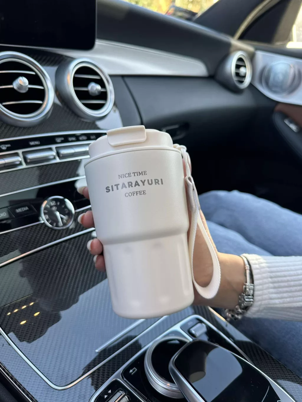 Rozsdamentes acél termosz, levehető akasztóval. 360 ml.