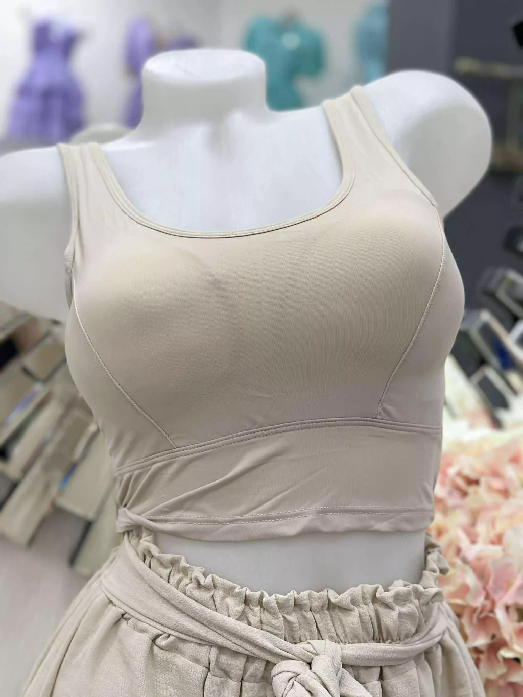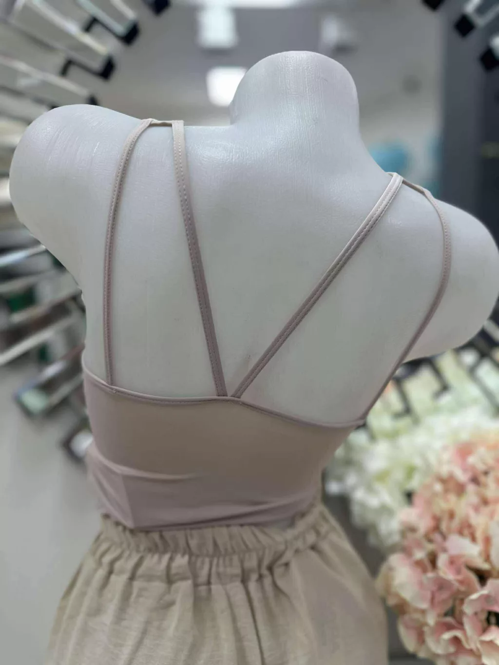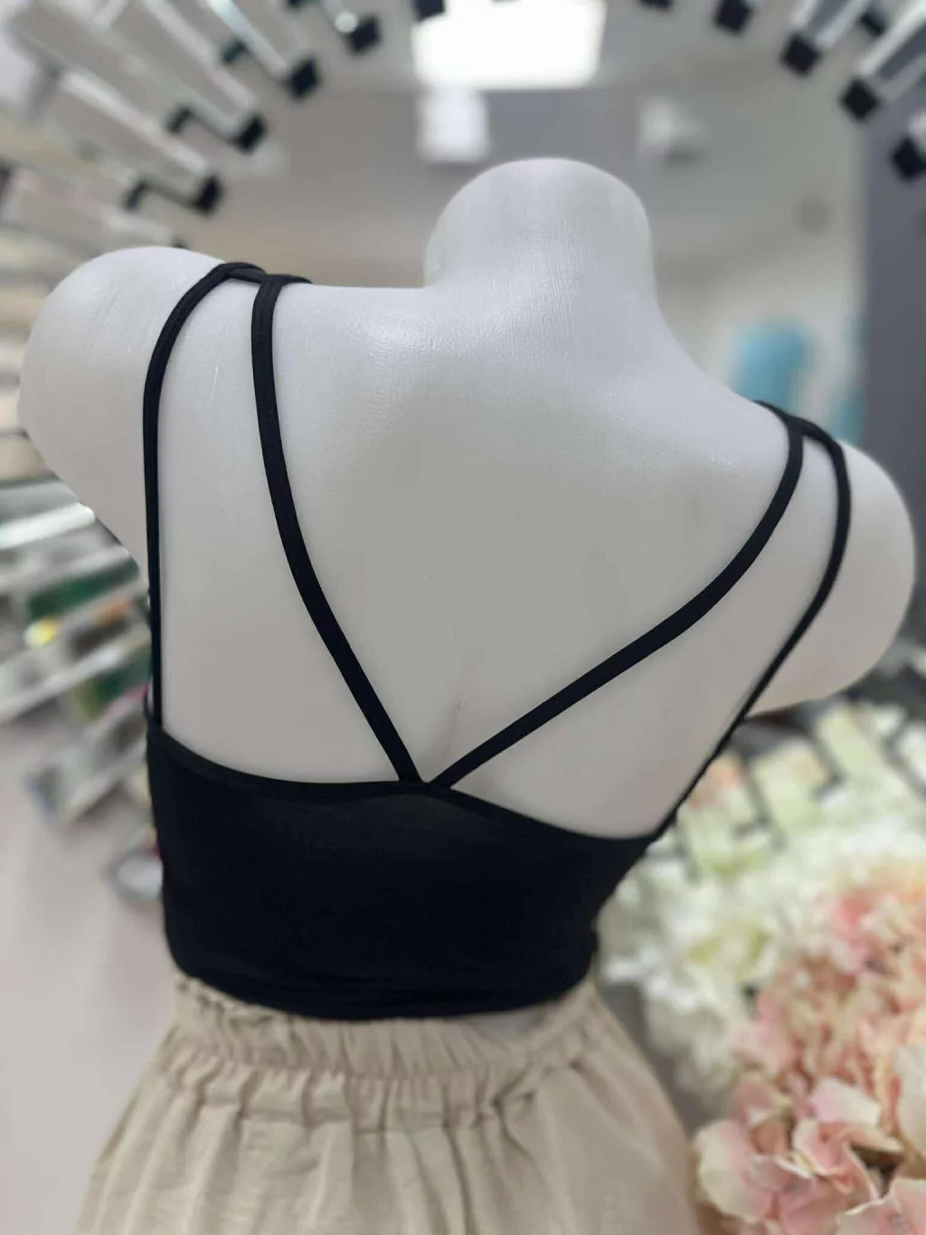 Rugalmas anyagú, mikroszálas, belevarrt, push up, szivacsbetétes, keresztpántos top. M/L és XL/XXL méretekben.