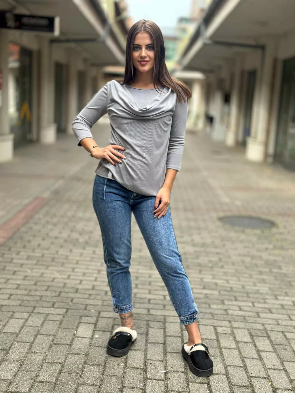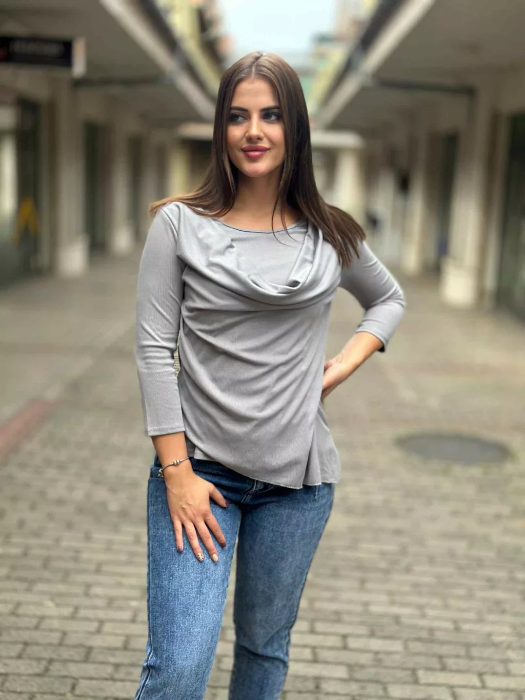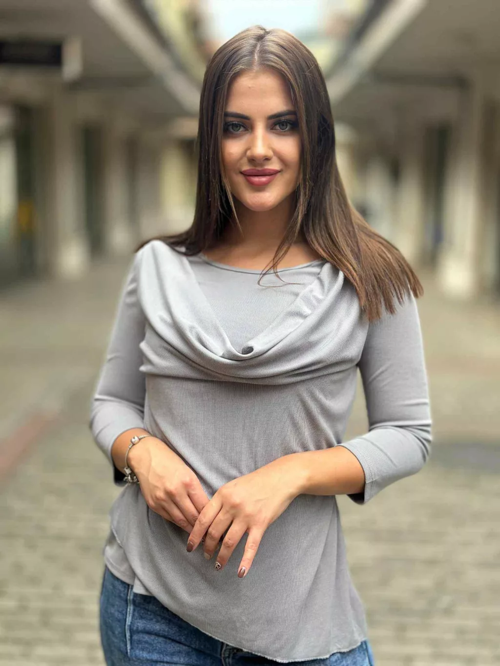 Rugalmas, elöl dupla anyagú, ejtettt nyakú felső. (S-L méretre ajánljuk.)