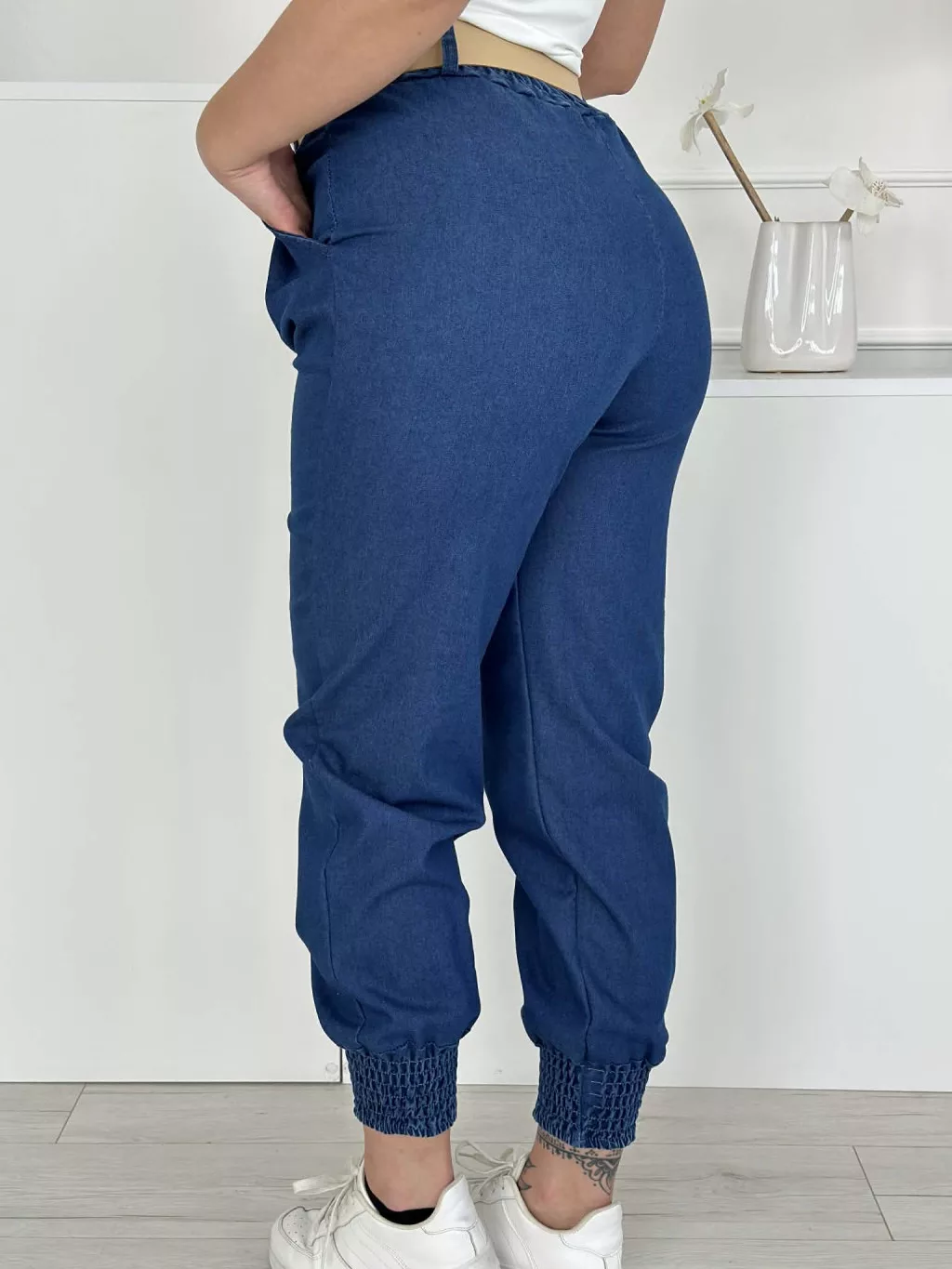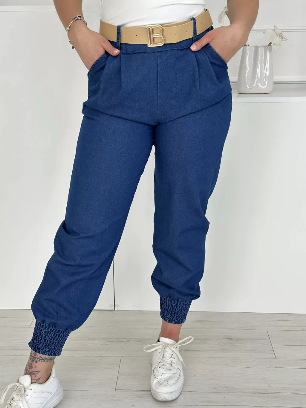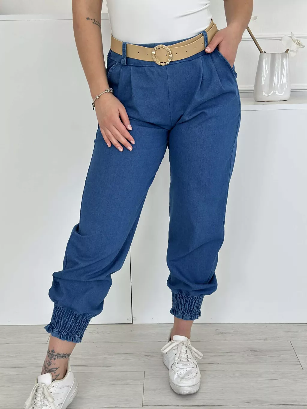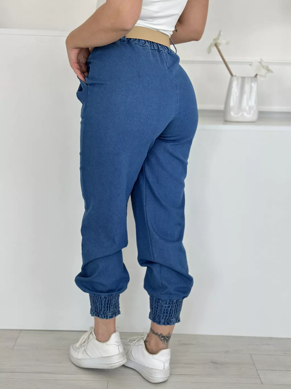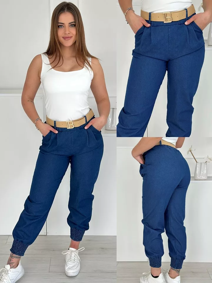 Rugalmas, farmer hatású nadrág övvel ,magas, gumis derekú, zsebes. (S-L méretre ajánljuk.)