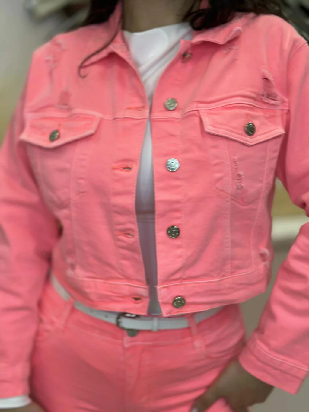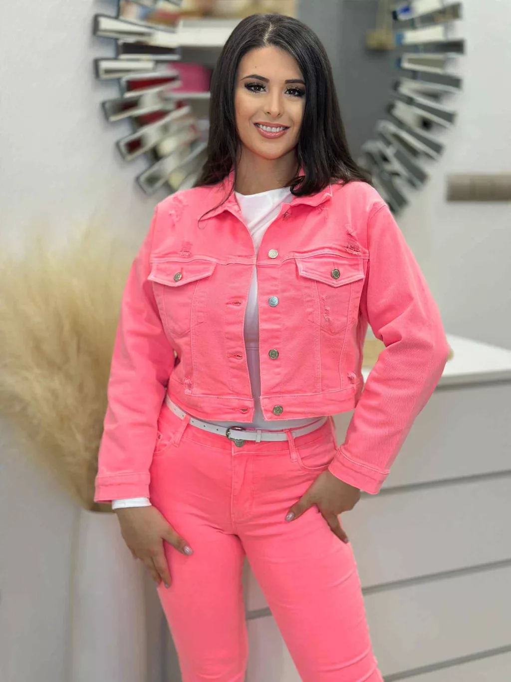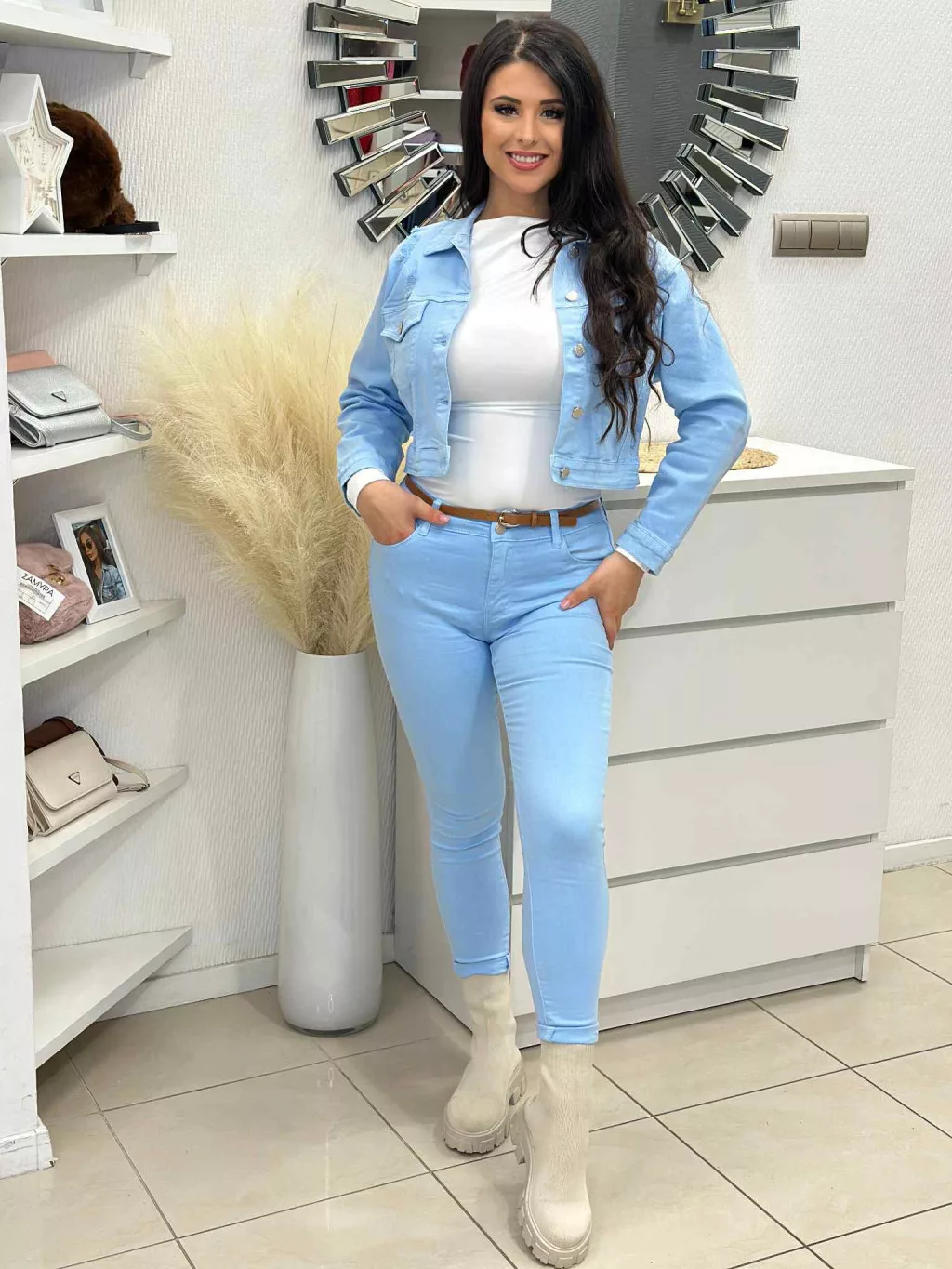 Rugalmas, szaggatott farmerkabát , rövid derekú, over size fazonú. A Modell M méretet visel. A farmernadrág külön vásárolható meg!