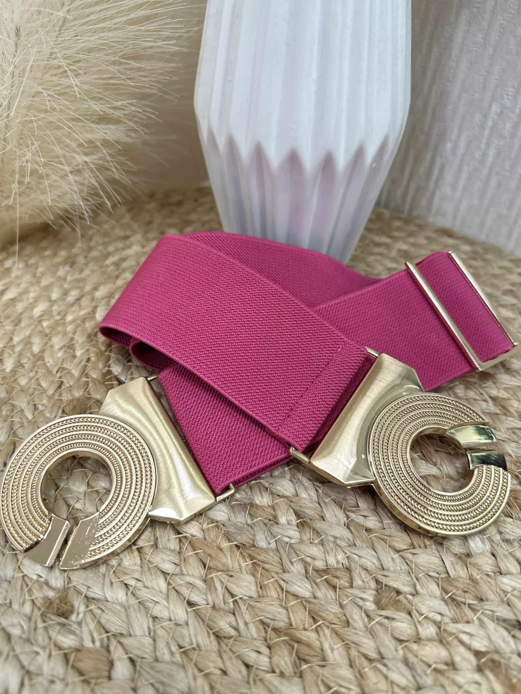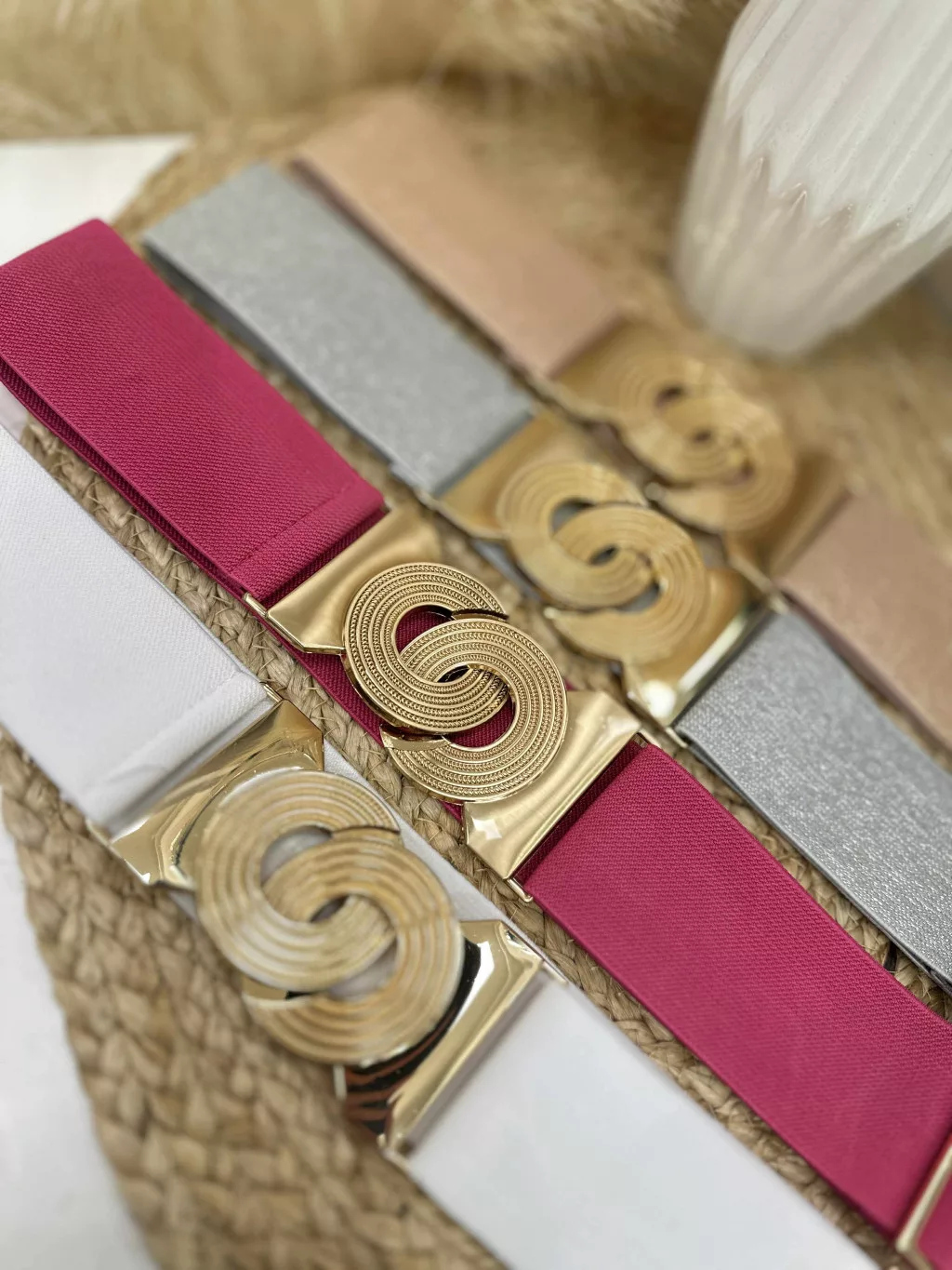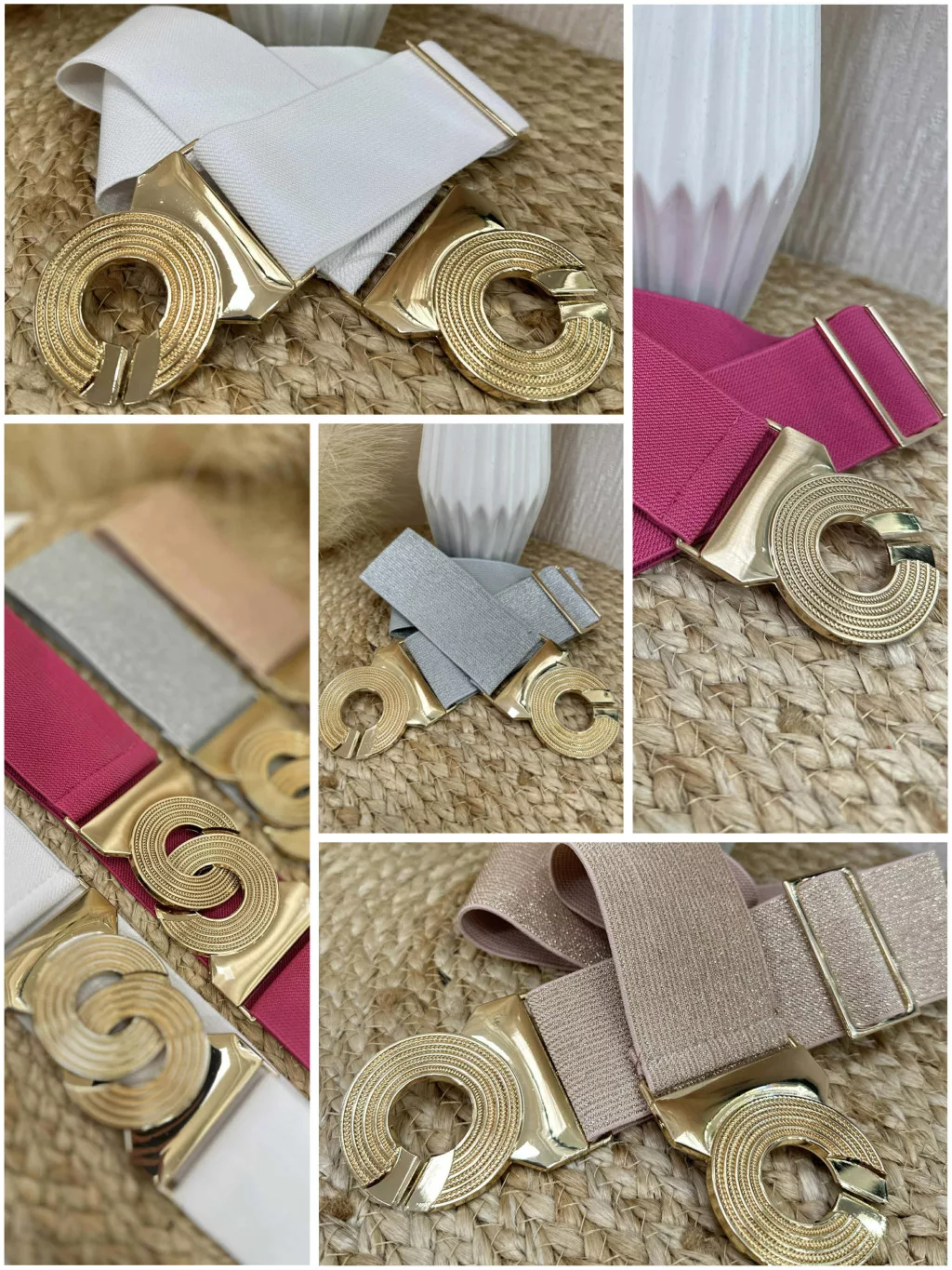 Rugalmas, vastag, gumis, fémcsatos öv.