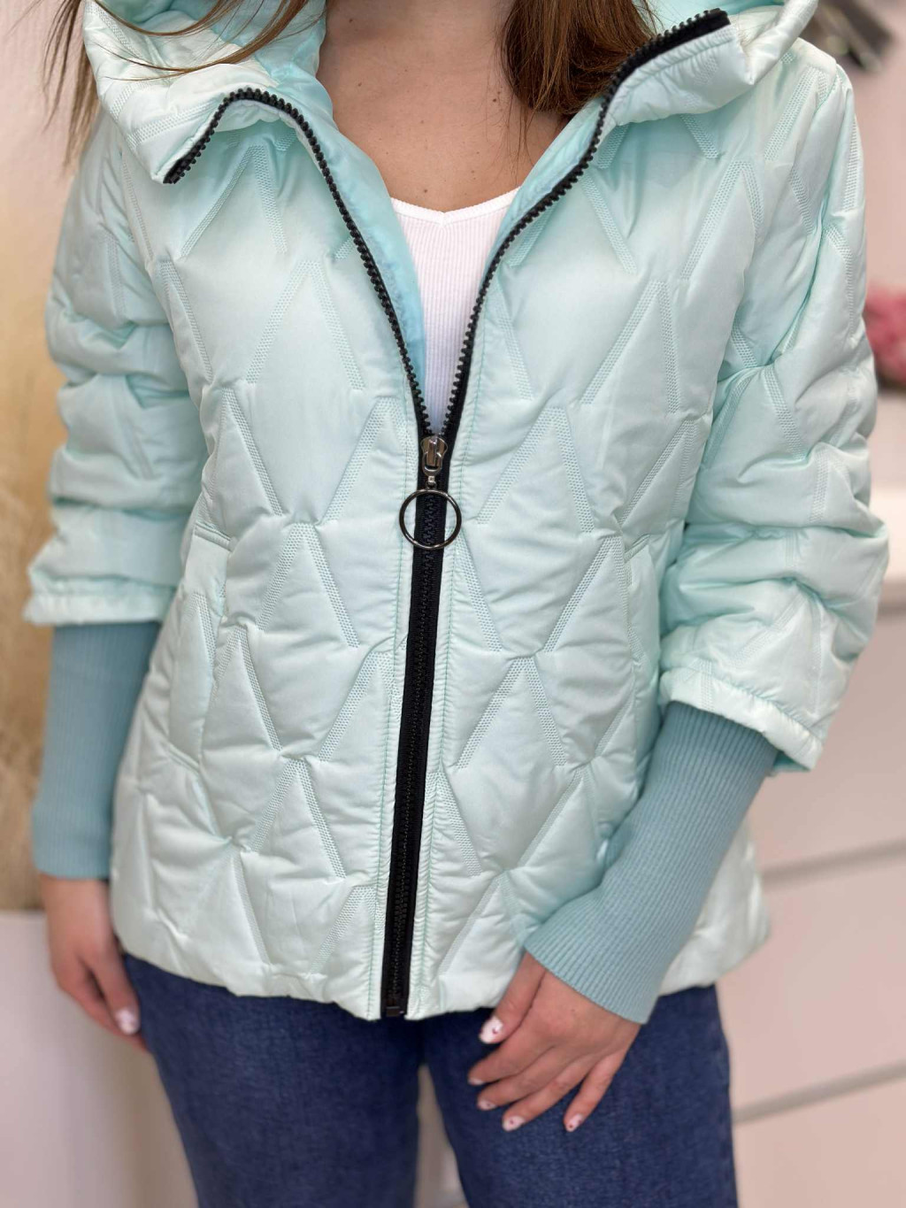 Steppelt kabát , patentos ujjú, zsebes, kapucnis, nem rugalmas. (S-L méretre ajánljuk.)