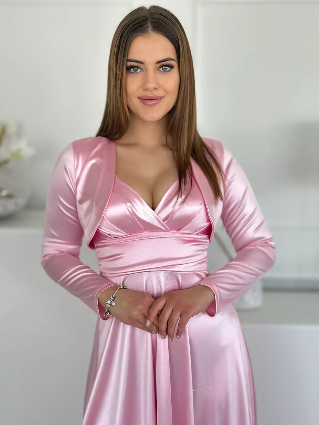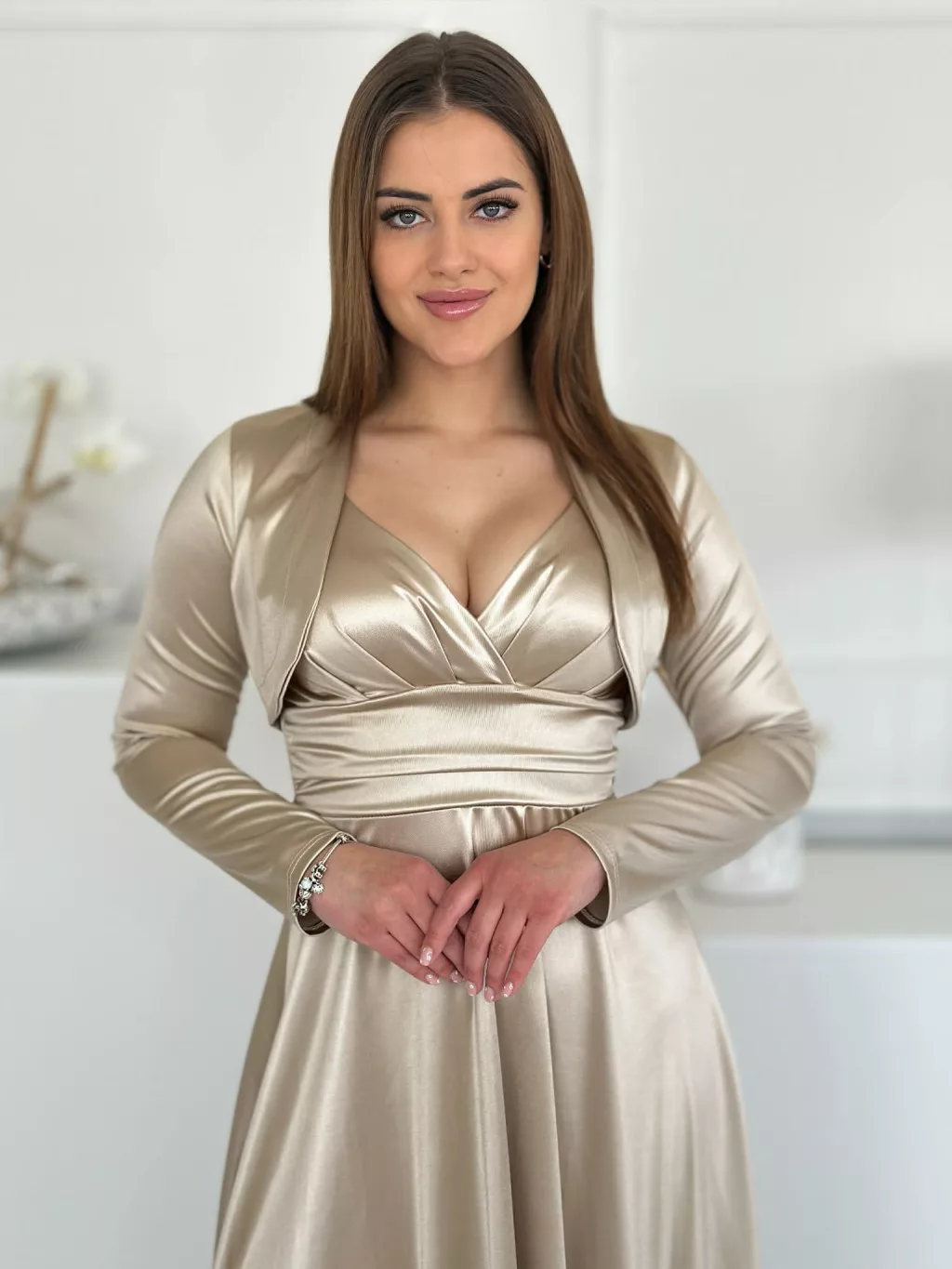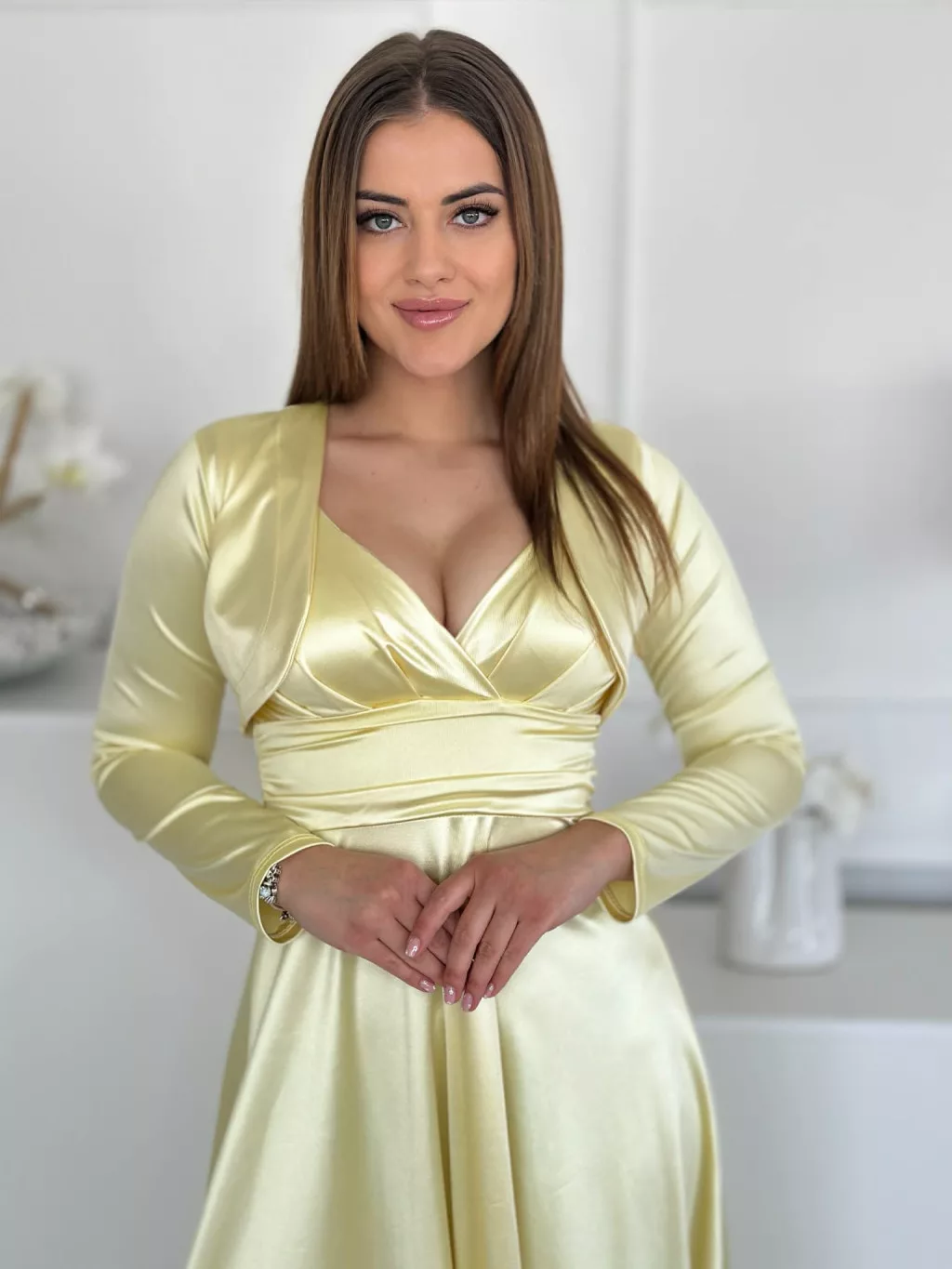 Szatén hatású boleró ,rugalmas, fényes anyagú, rövid derekú, béleletlen. A ruha külön vásárolható meg! (XS-M méretre ajánljuk.)