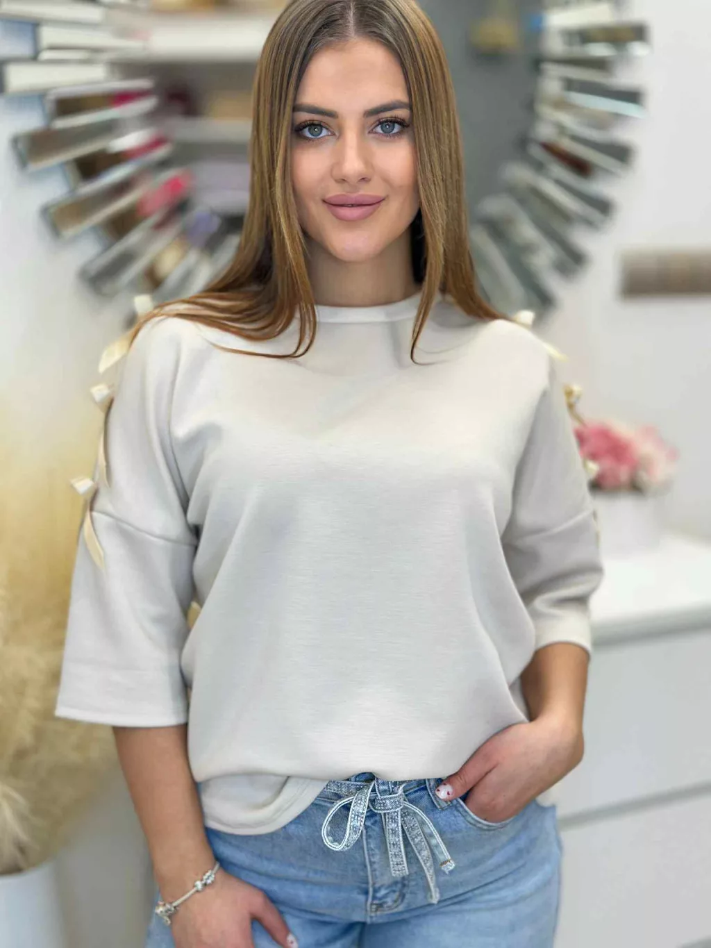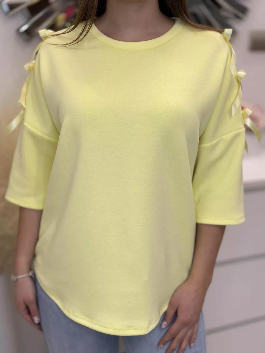 Vállán masnis felső , rugalmas, puha anyagú, lenge fazonú. (S-XL méretre ajánljuk.)