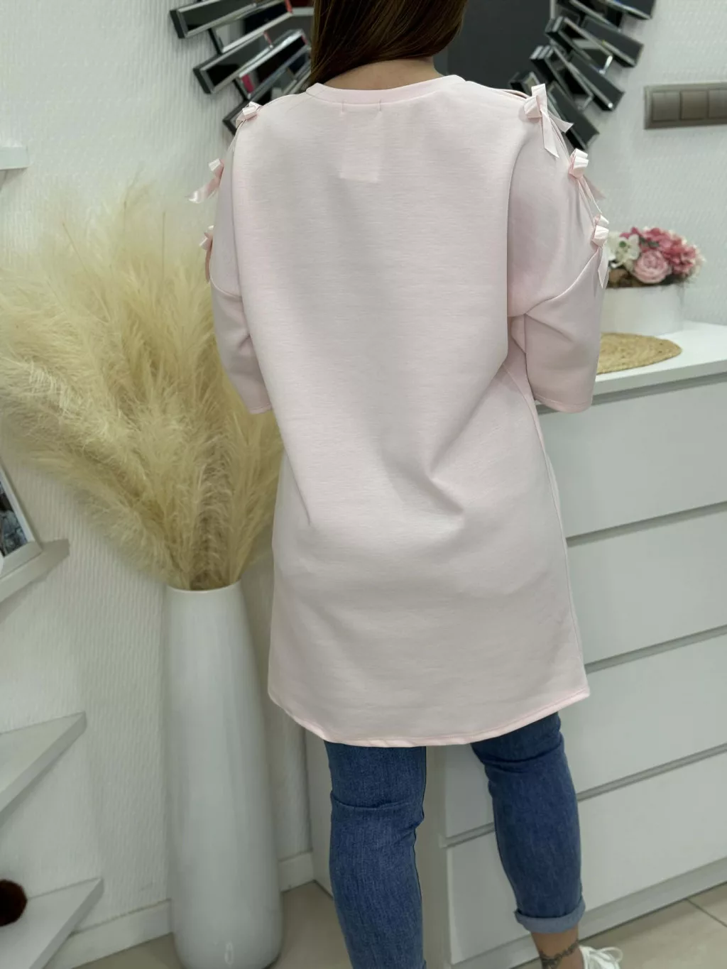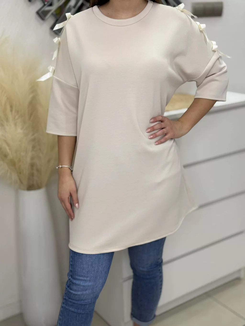 Vállán masnis tunika , rugalmas, puha anyagú, lenge fazonú. (S-XL méretre ajánljuk.)
