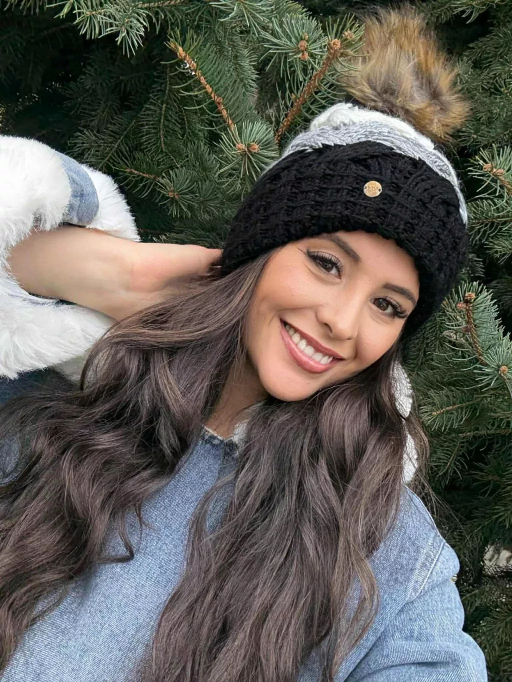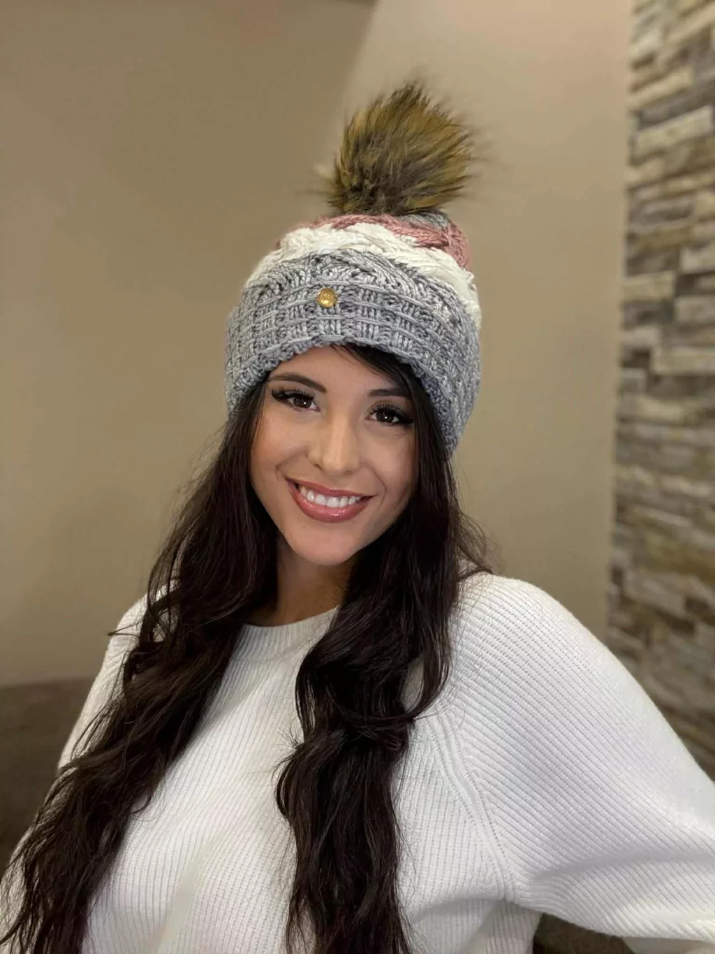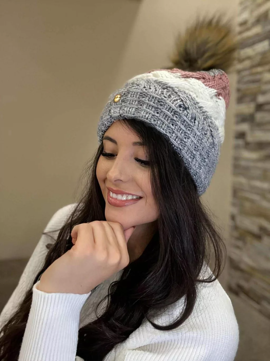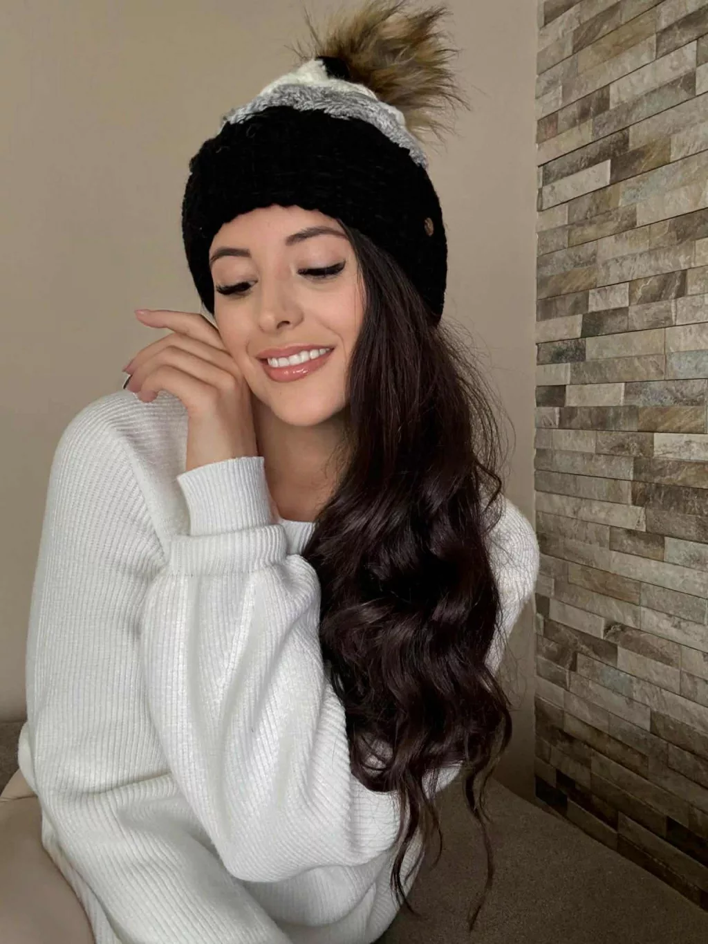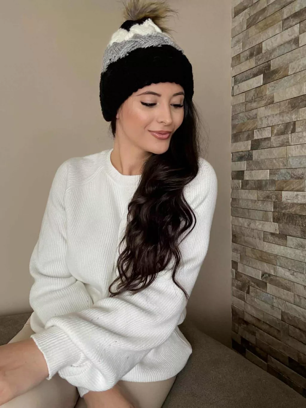 Vastag, kötött, bojtos, meleg sapka .