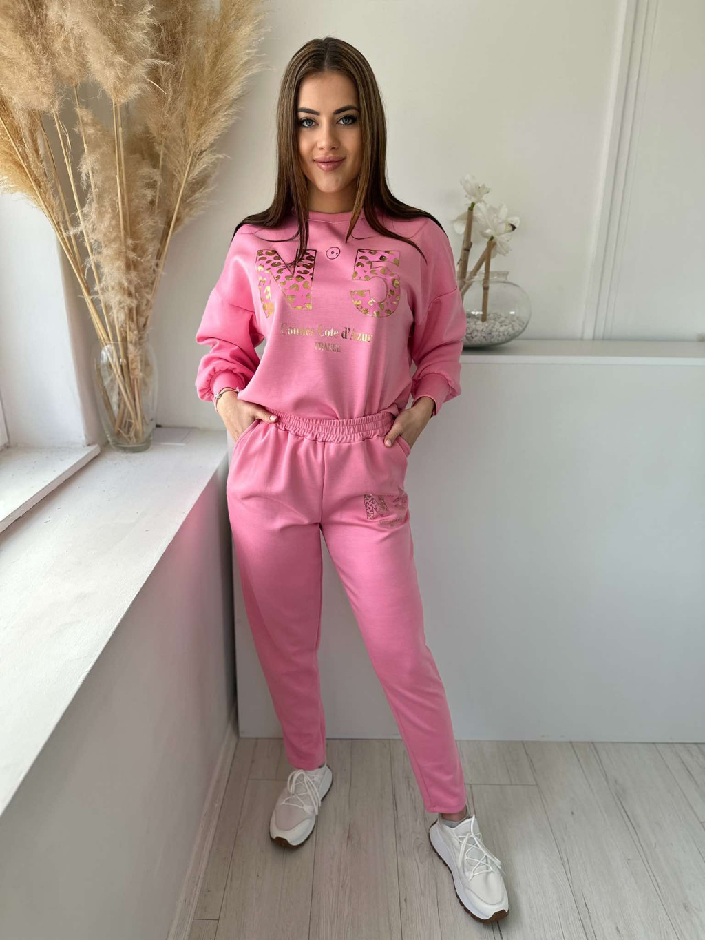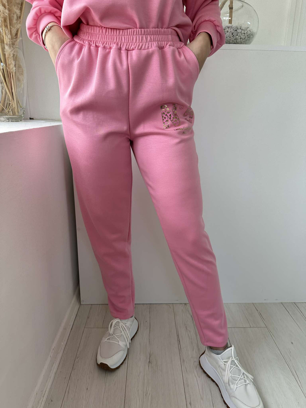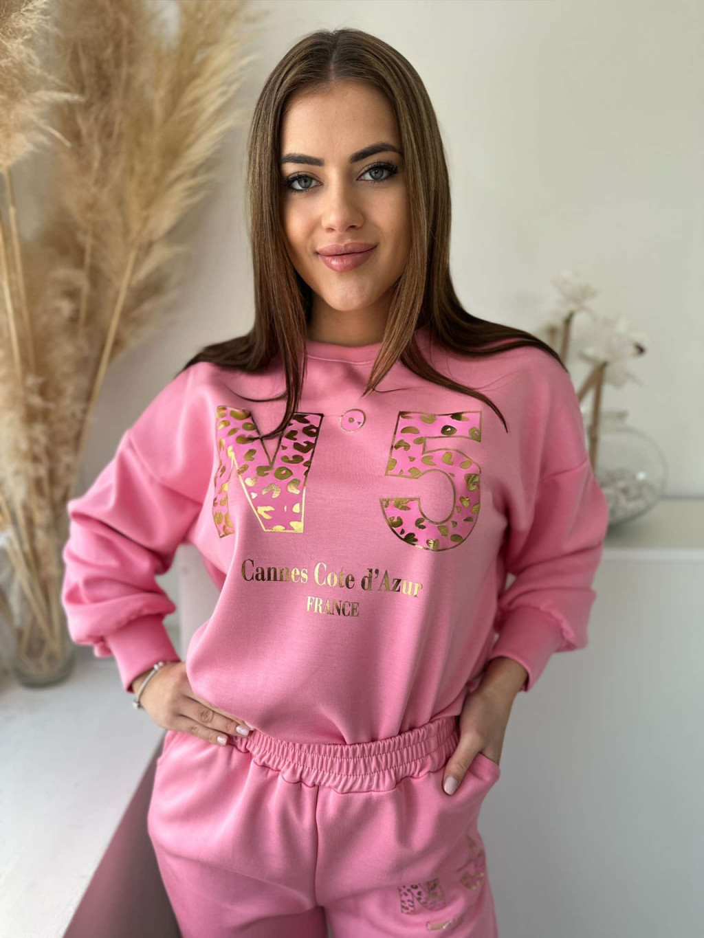 Rugalmas, puha anyagú, sporotos fazonú szett. Lenge fazonú, kerek nyakú, mintás pulcsi, magas, gumis derekú, zsebes nadrággal. (S-L méretre ajánljuk.)