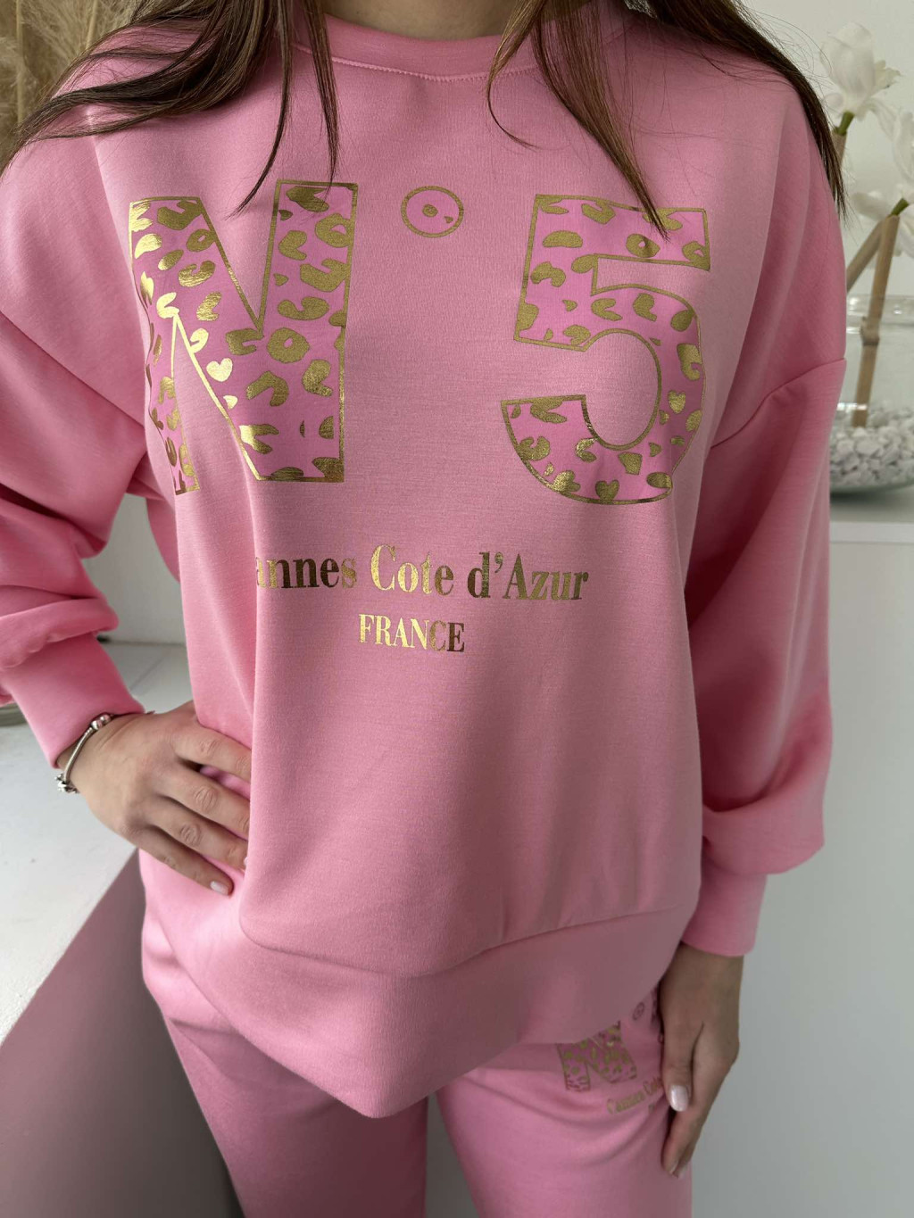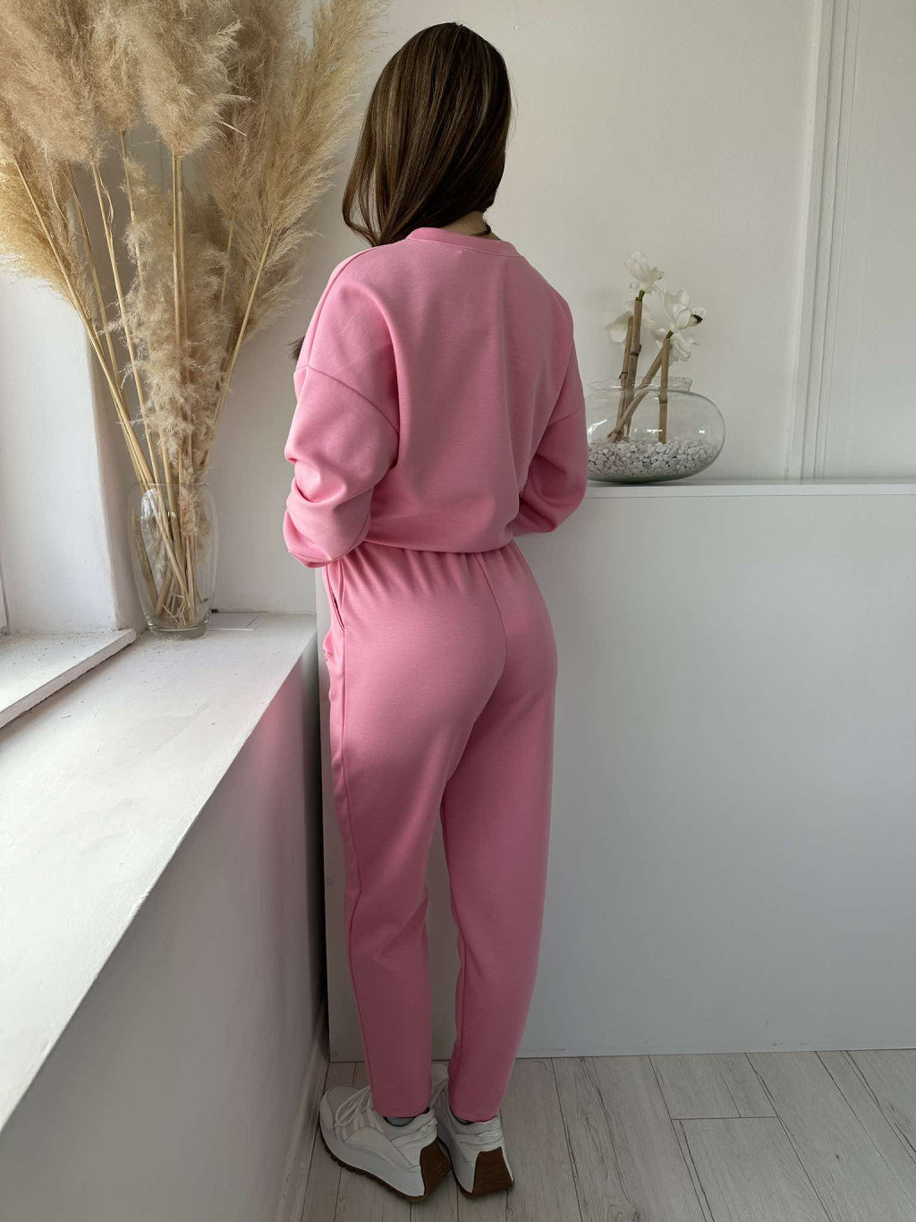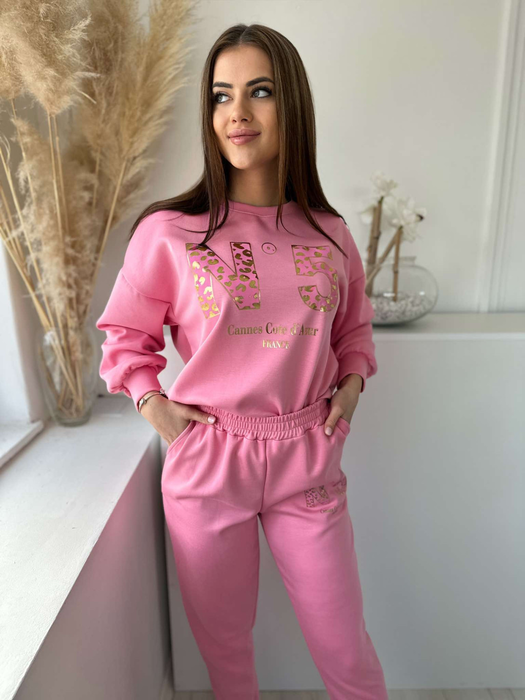 Rugalmas, puha anyagú, sporotos fazonú szett. Lenge fazonú, kerek nyakú, mintás pulcsi, magas, gumis derekú, zsebes nadrággal. (S-L méretre ajánljuk.)