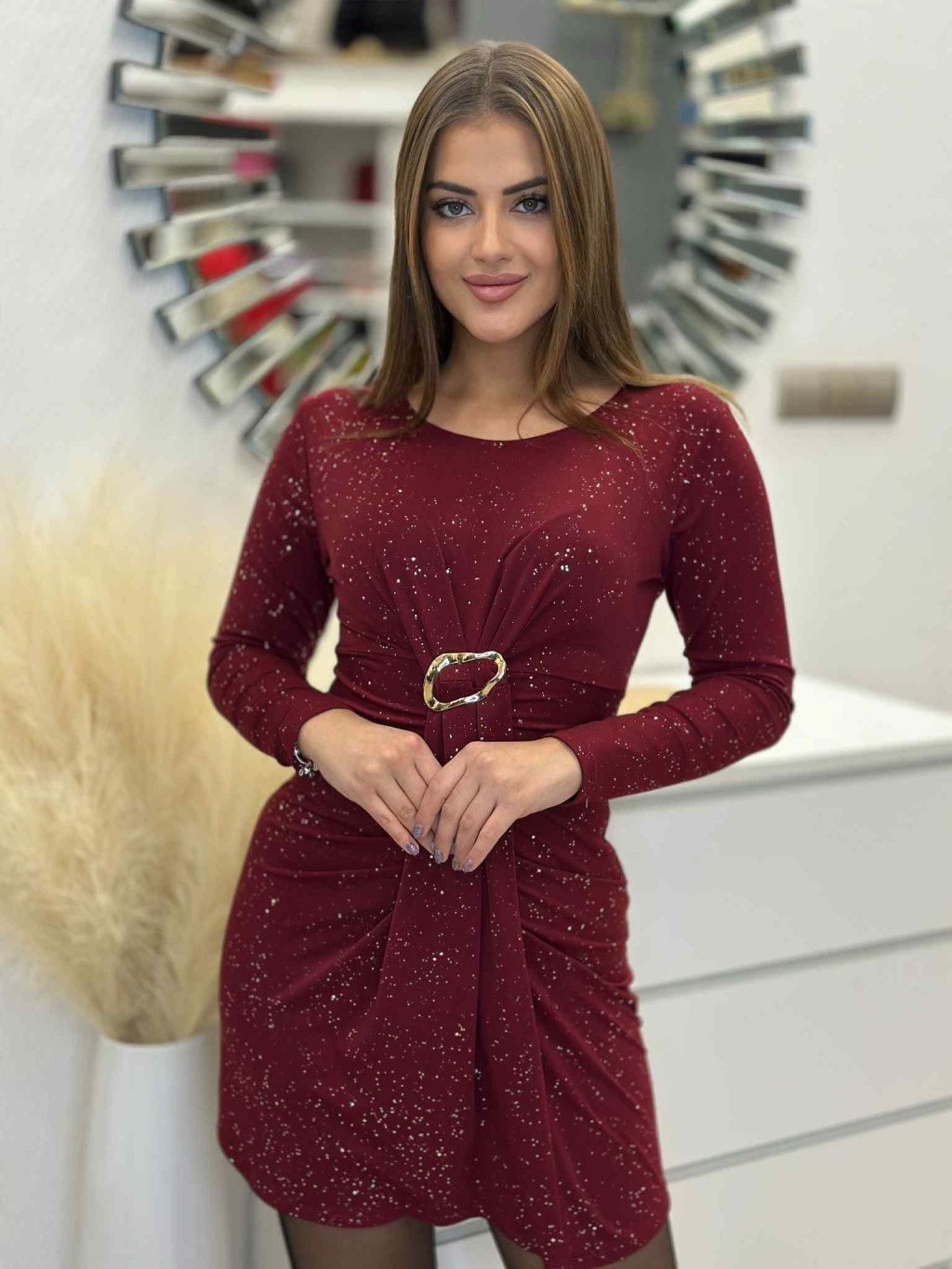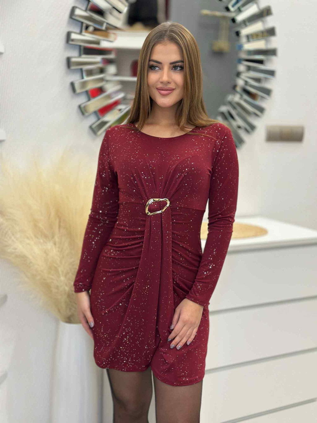 Elegáns, rugalmas anyagú, csillogós ruha . Testhezálló, elöl húzott, kereknyakú. (S-L méretre ajánljuk.)