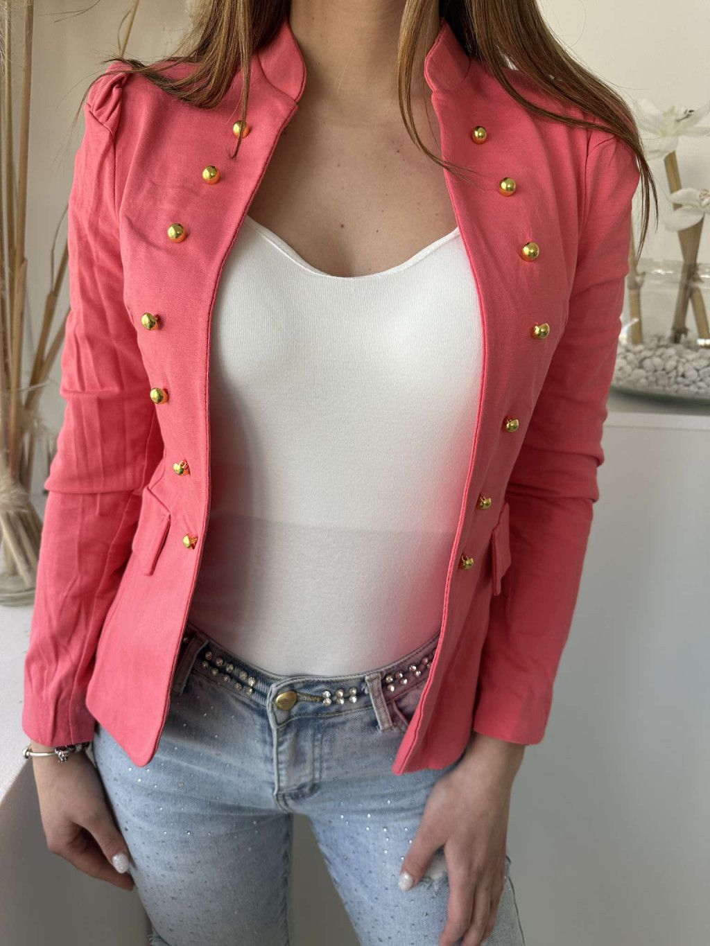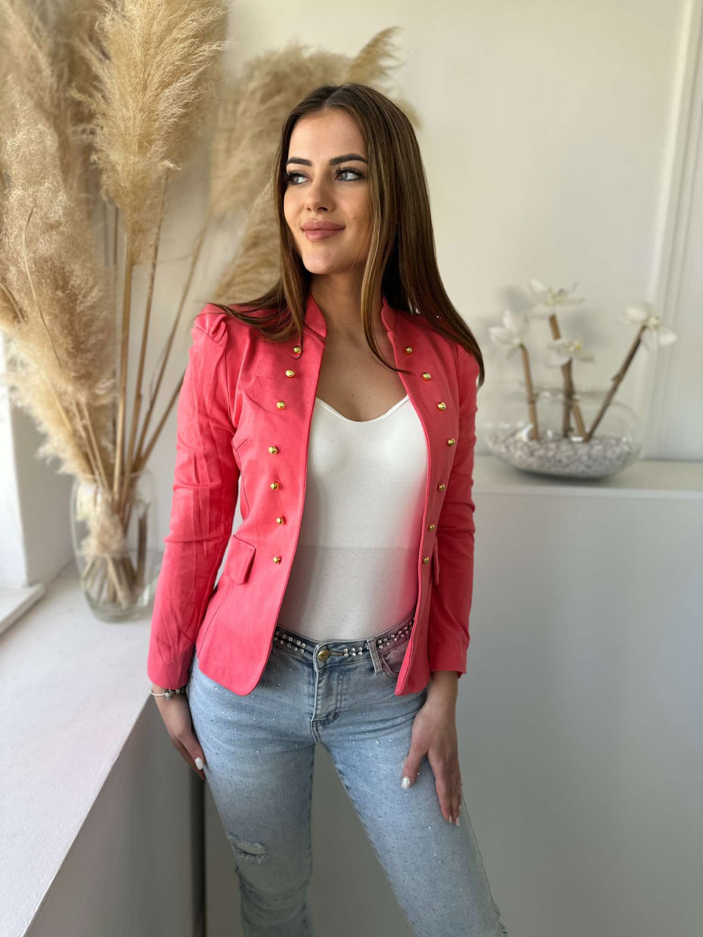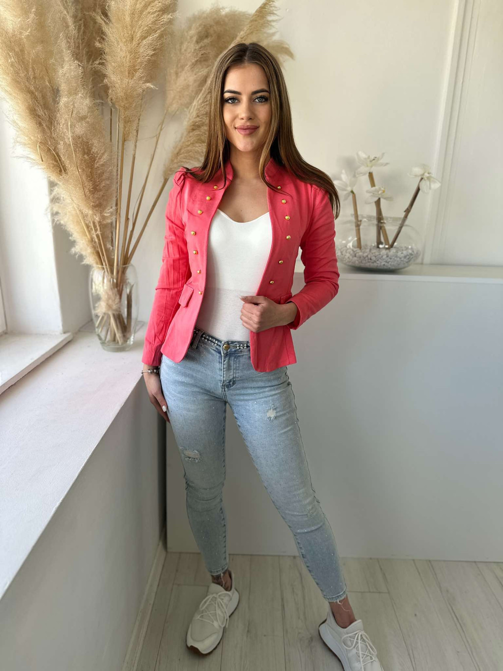 Pamut anyagú, bélelt, díszzsebes, nem rugalmas, válltöméses blézer. VIGYÁZZ! KIS MÉRETEZÉS! A Modell L (S-nek felel meg) méretet visel.