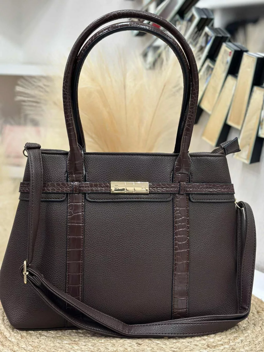 Műbőr, merev fazonú táska, levehető hosszúpánttal.