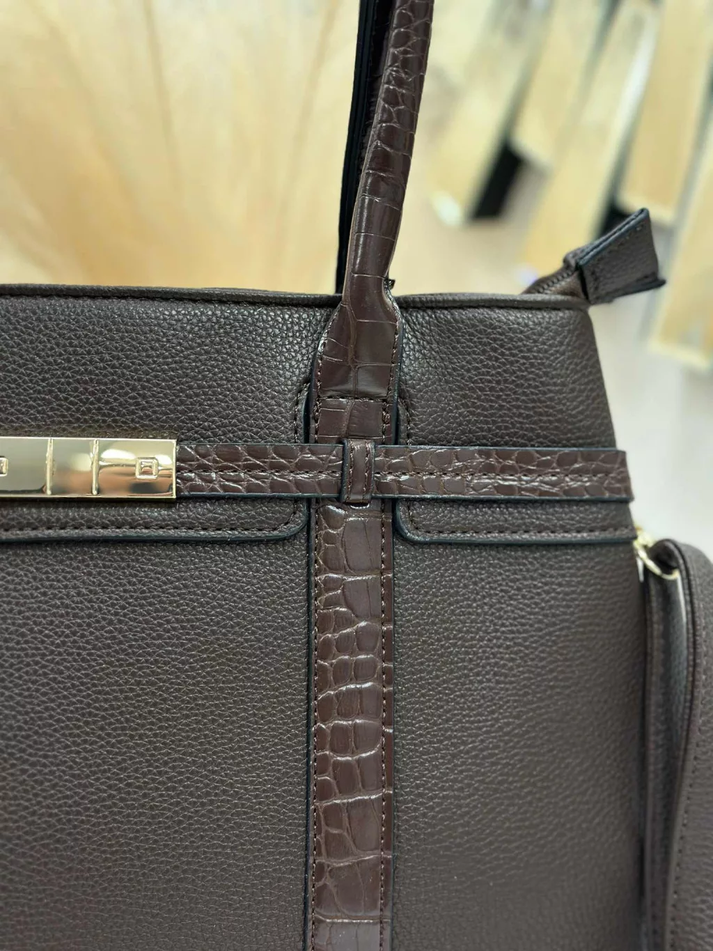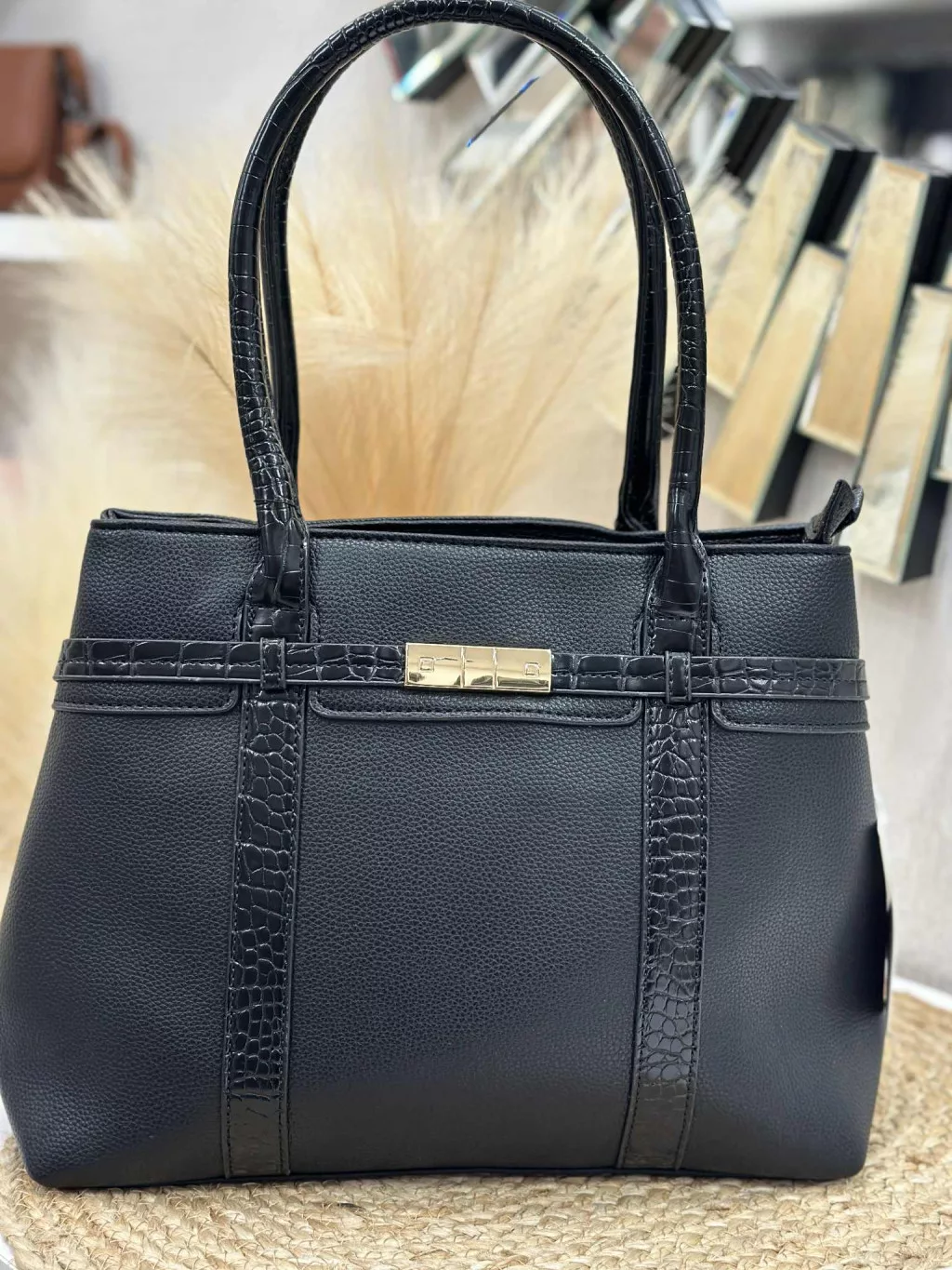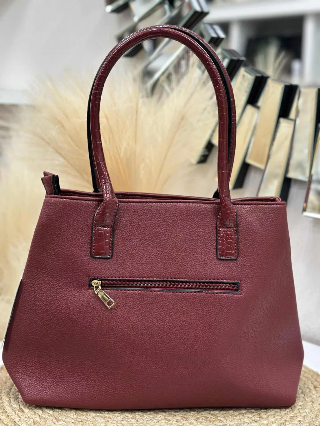 Műbőr, merev fazonú táska, levehető hosszúpánttal. Szélesség: 38 cm Magasság: 27 cm.