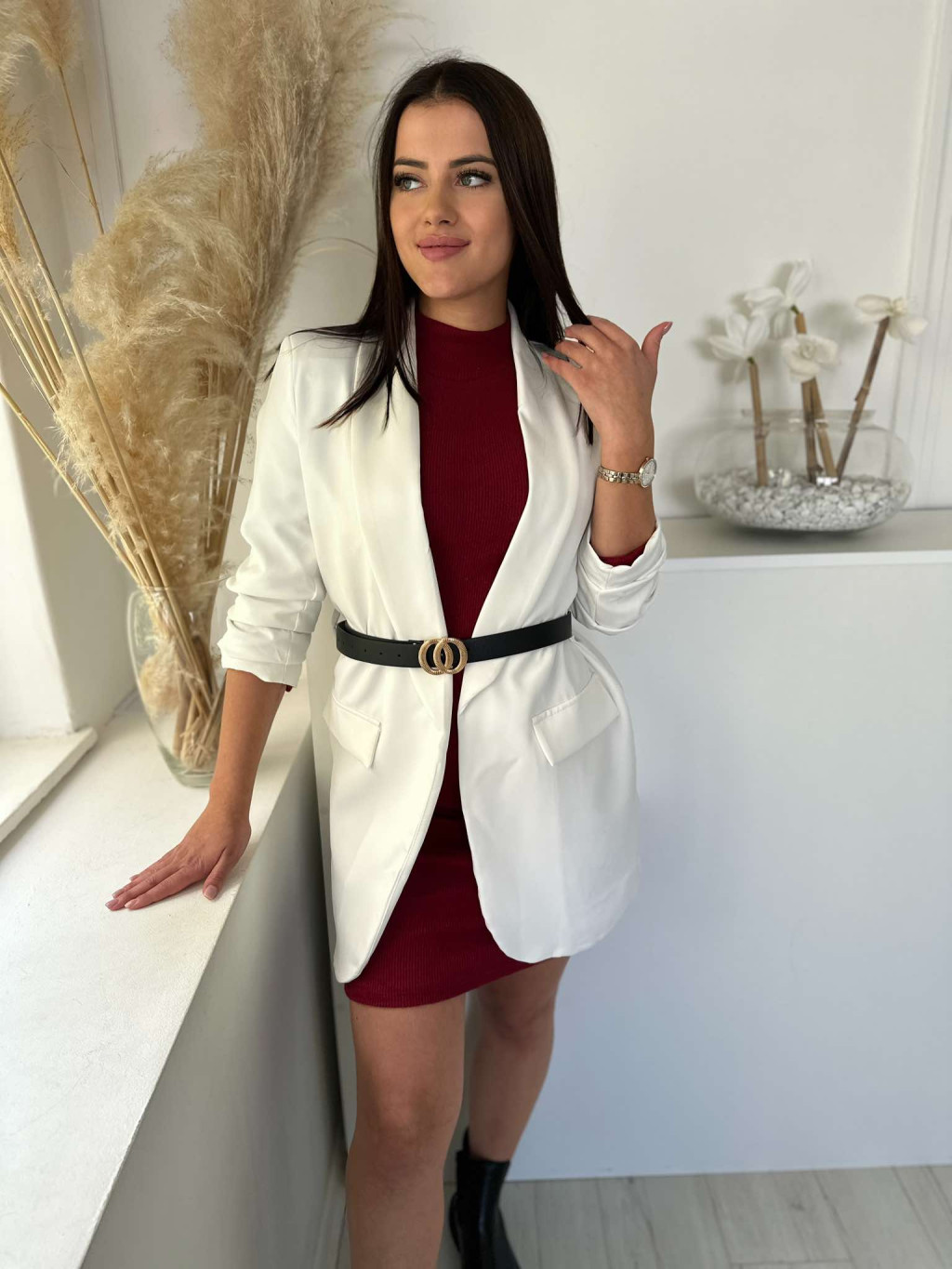 Lenge fazonú, bélelt, nem rugalmas, ujján húzott, csinos overál övvel. (S-L méretre ajánljuk.)